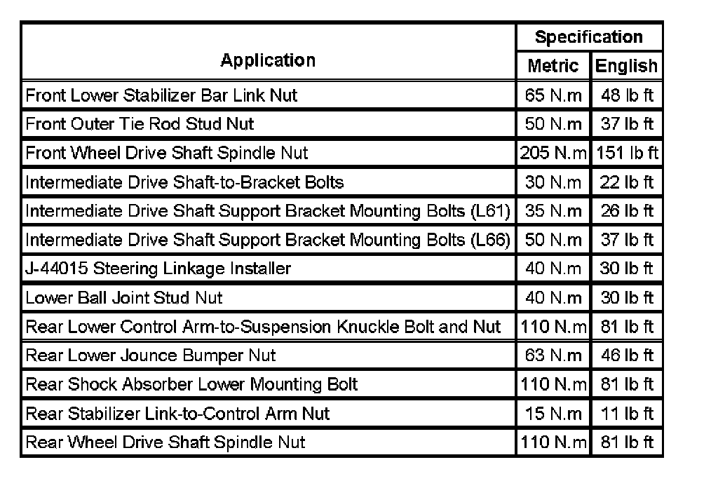 Fastener Tightening Specifications: