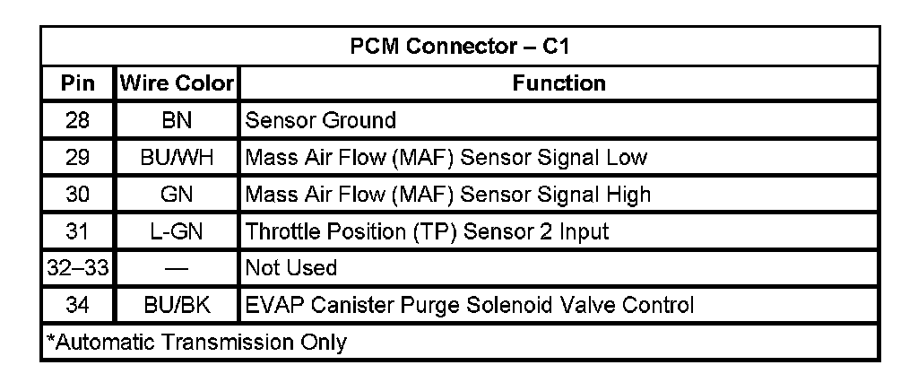 PCM Connector - C1 (Part 1):
