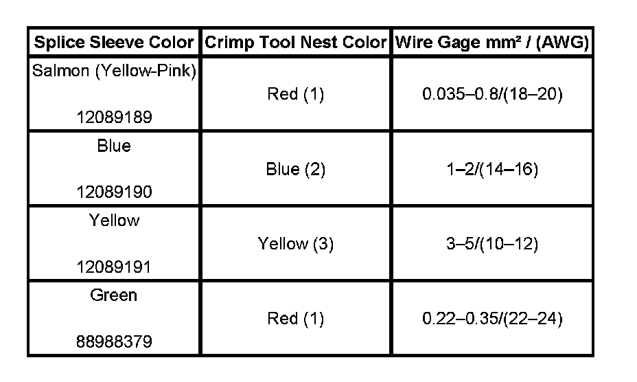 4. Select the proper DuraSeal splice sleeve according to the wire size. Refer to the above table at the beginning of the repair procedure for the color coding of the DuraSeal splice sleeves and the crimp tool nests.