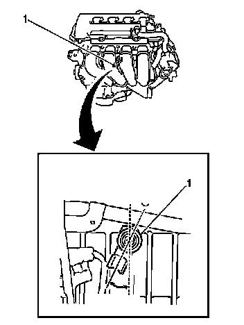 Align the KS (1) on the engine block as illustrated. The KS electrical connector cavity must point down, in a 15-30 degree arc from perpendicular to the earth.