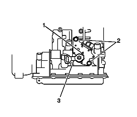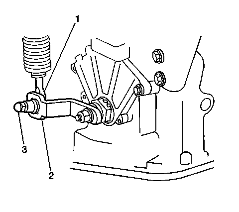 12. Install the shift select cable in the retaining bracket (2), then install the clip (3).