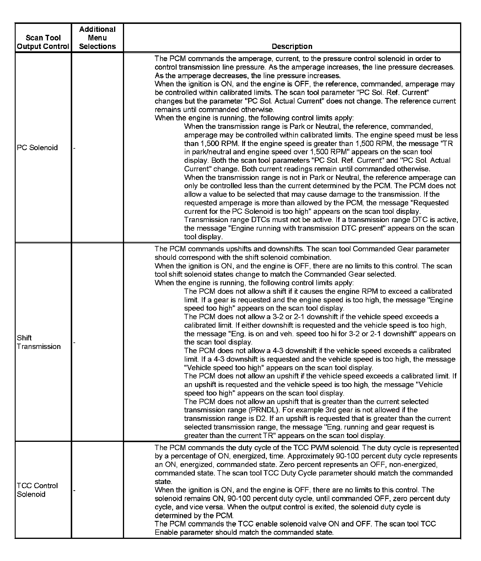 Scan Tool Output Controls: