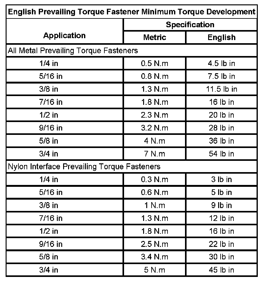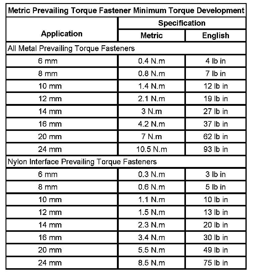 * The fastener develops the specified minimum torque against its counterpart prior to the fastener seating