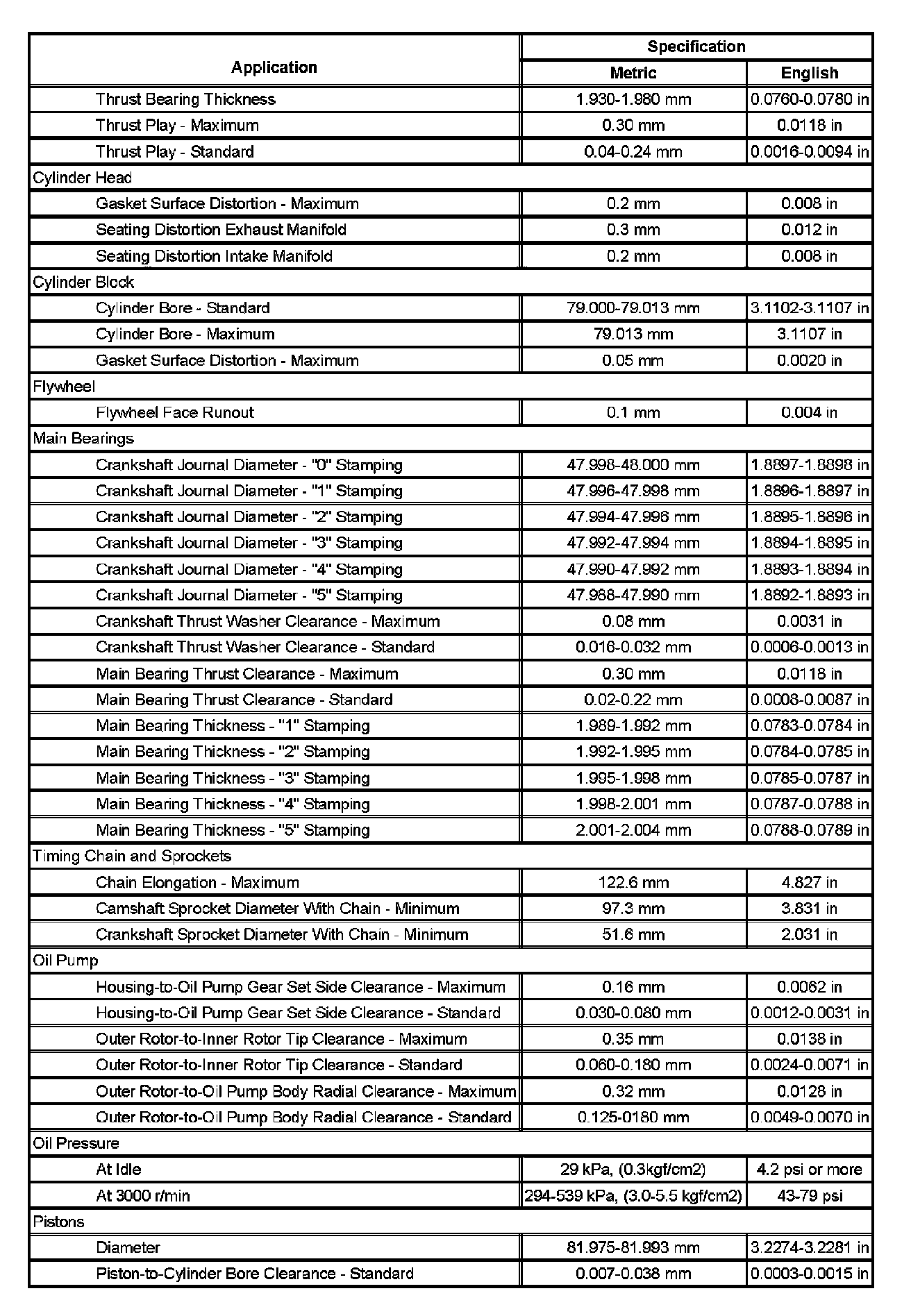 Engine Mechanical Specifications (Part 2):