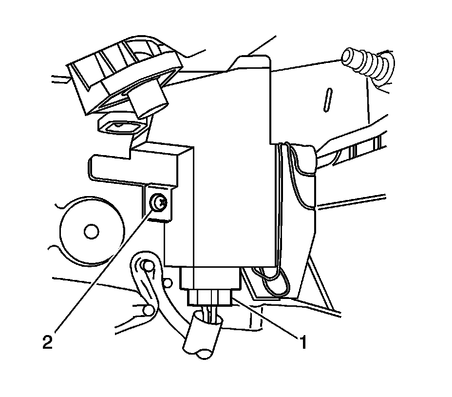 1. Install the Shift Lock Control Module/Shift Lock Solenoid assembly, then the retaining screw (2).