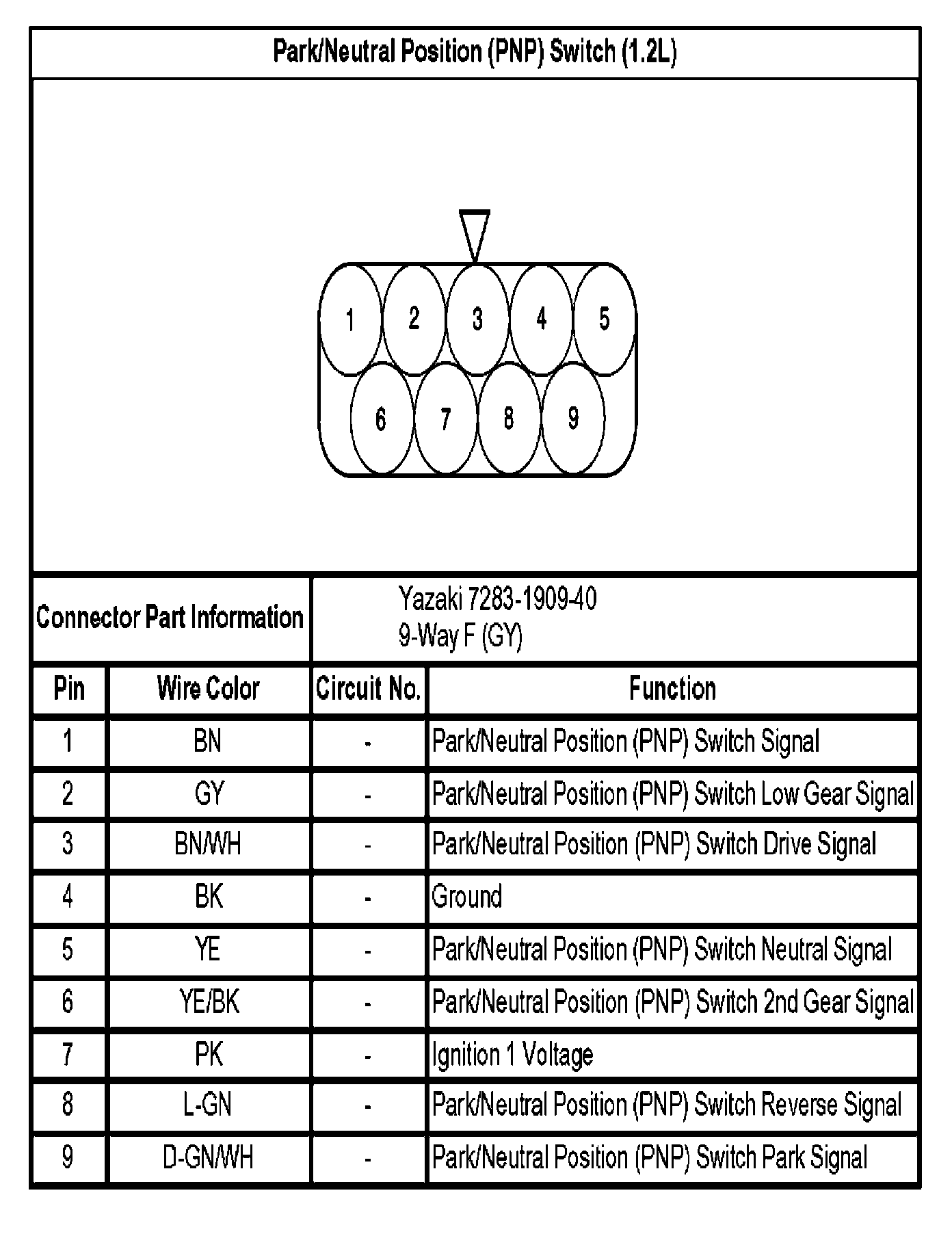 Park/Neutral Position (PNP) Switch (1.2L):