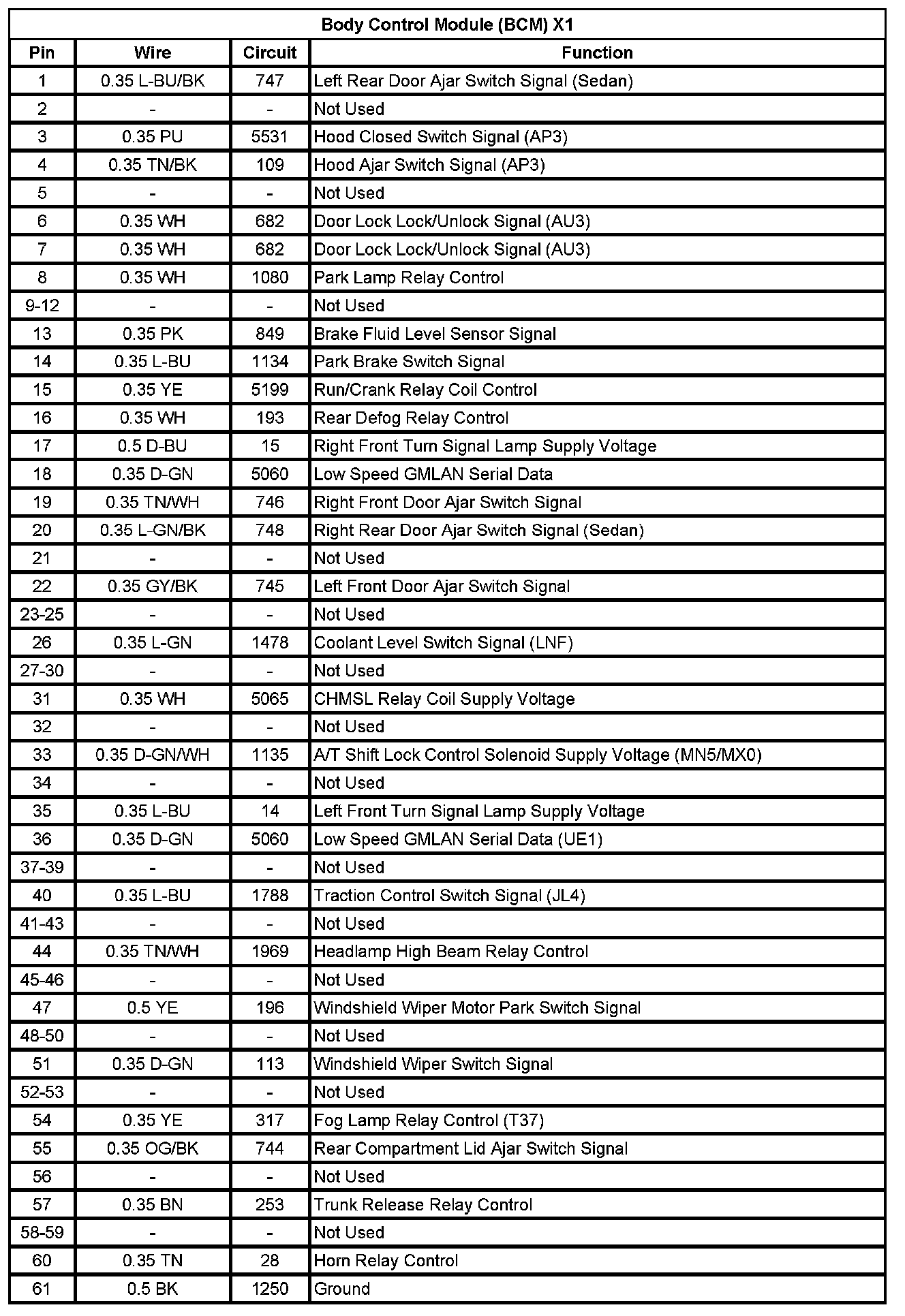 Body Control Module (BCM) X1 (Pin 1 To 61):