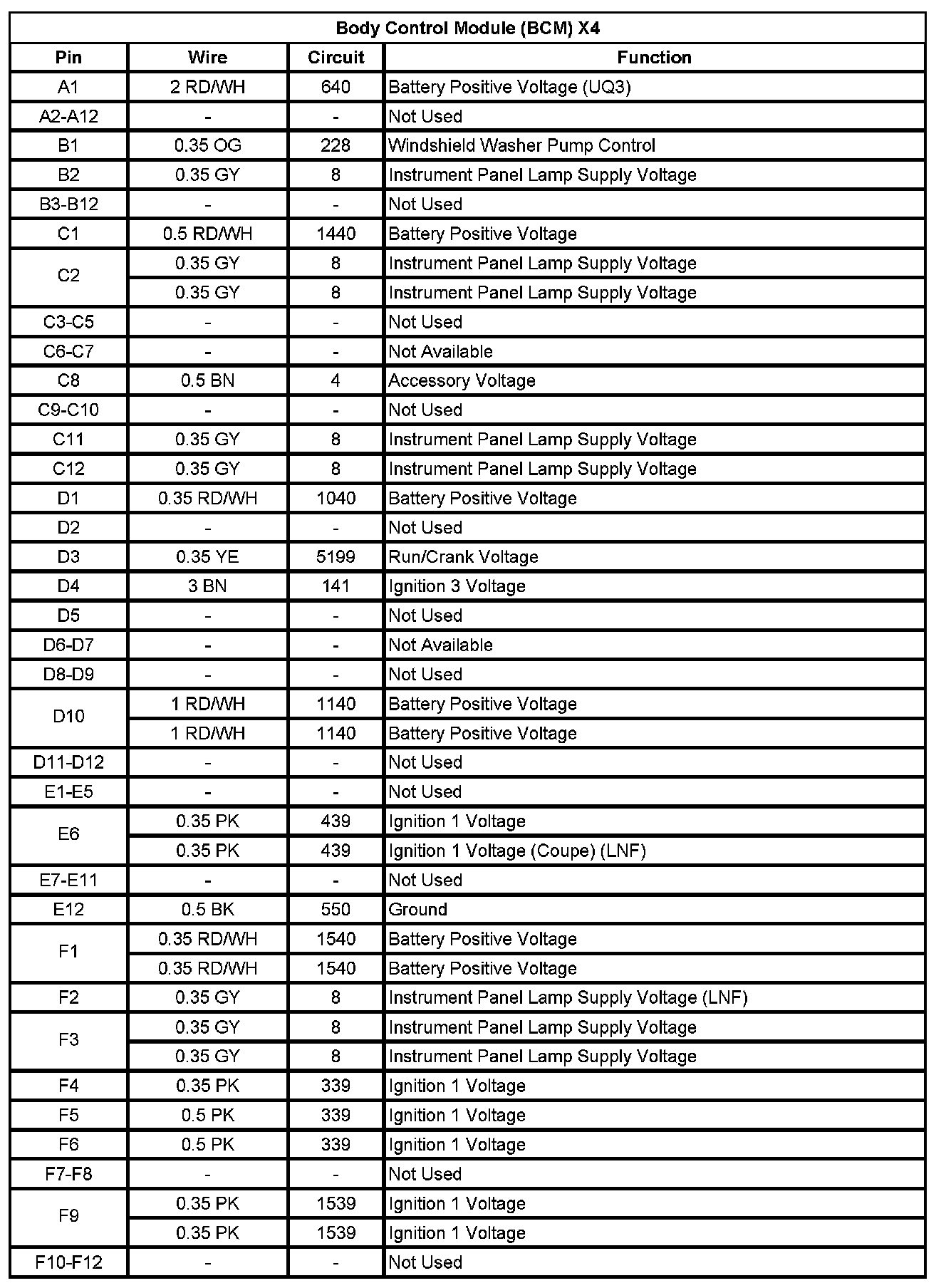 Body Control Module (BCM) X1 (Pin 62 To 72):