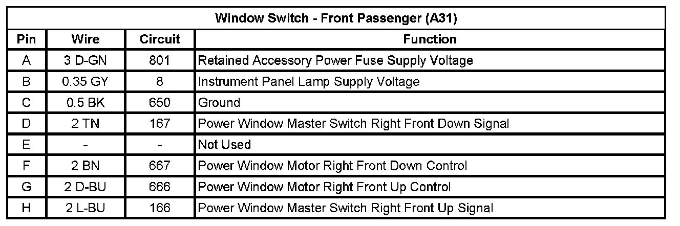 Window Switch - Front Passenger (A31)