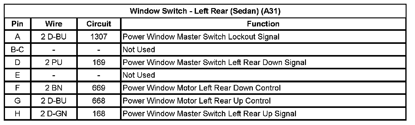 Window Switch - Left Rear (Sedan) (A31)