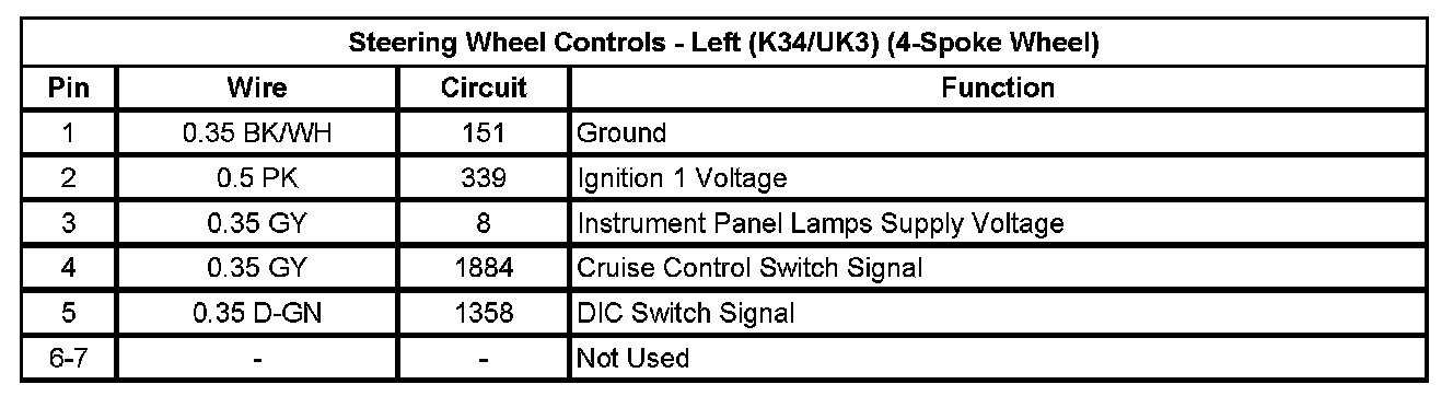 Steering Wheel Controls - Left (K34) (4-Spoke Wheel)