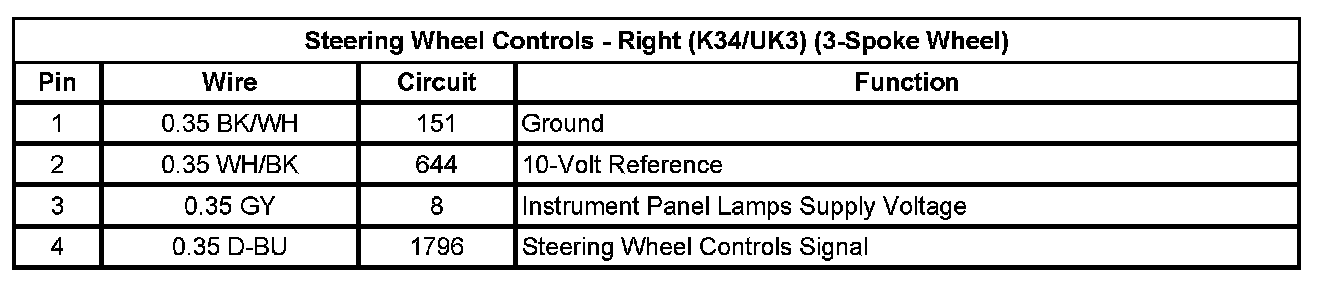 Steering Wheel Controls - Right (K34/UK3) (3-Spoke Wheel)