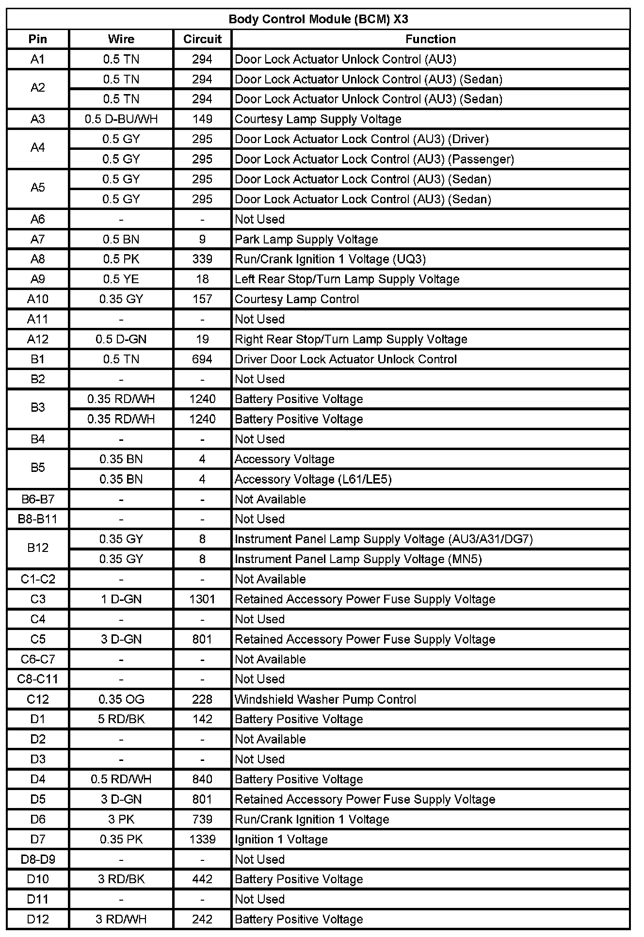Body Control Module (BCM) X2 (Pin 1 To 50):