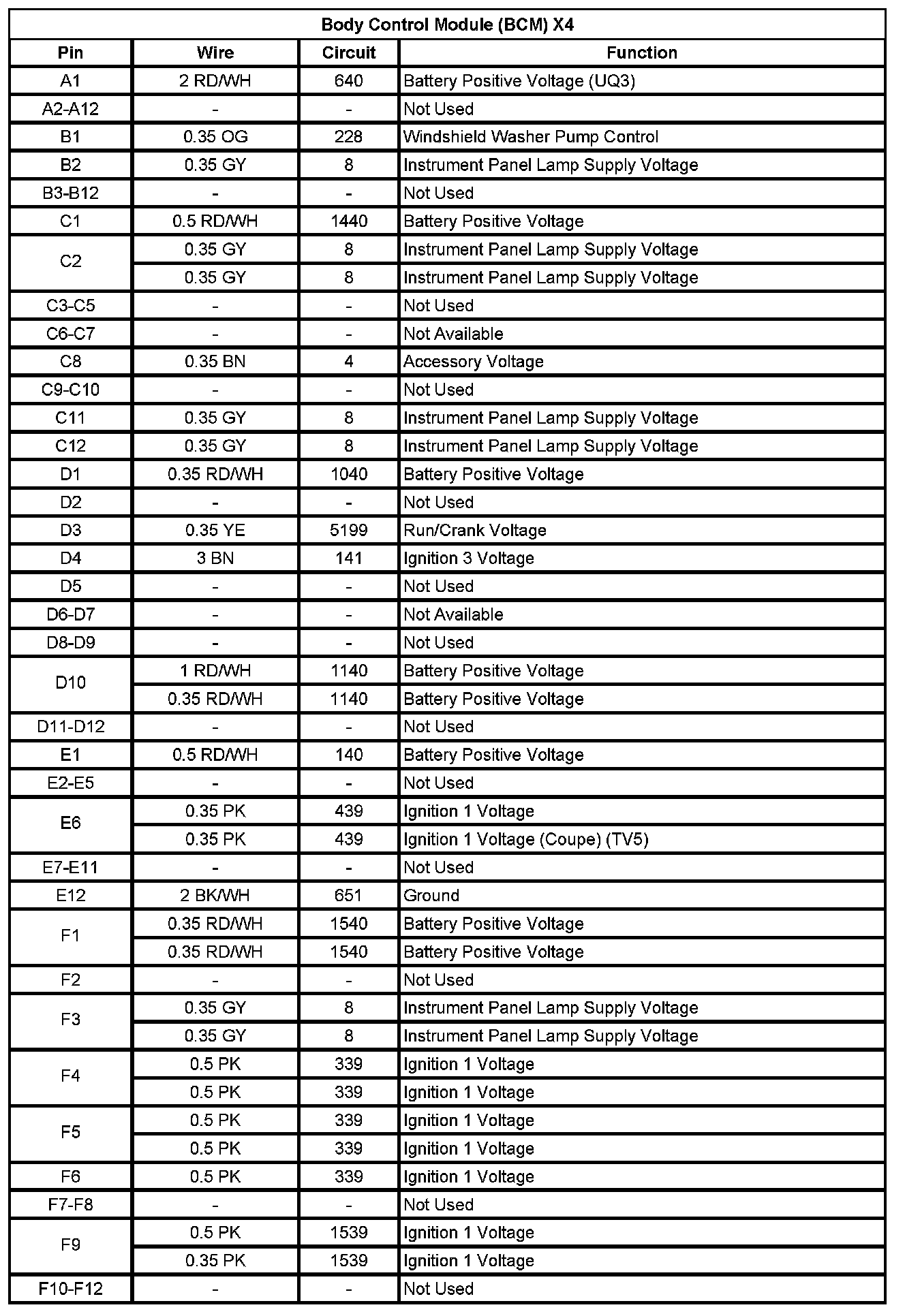 Body Control Module (BCM) X1 (Pin 37 To 72):