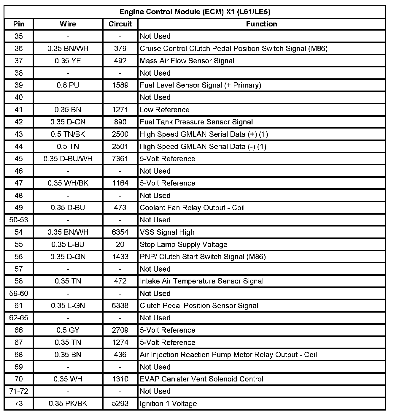 Engine Control Module (ECM) X1 (L61/LE5) (Pin 35 To 73):