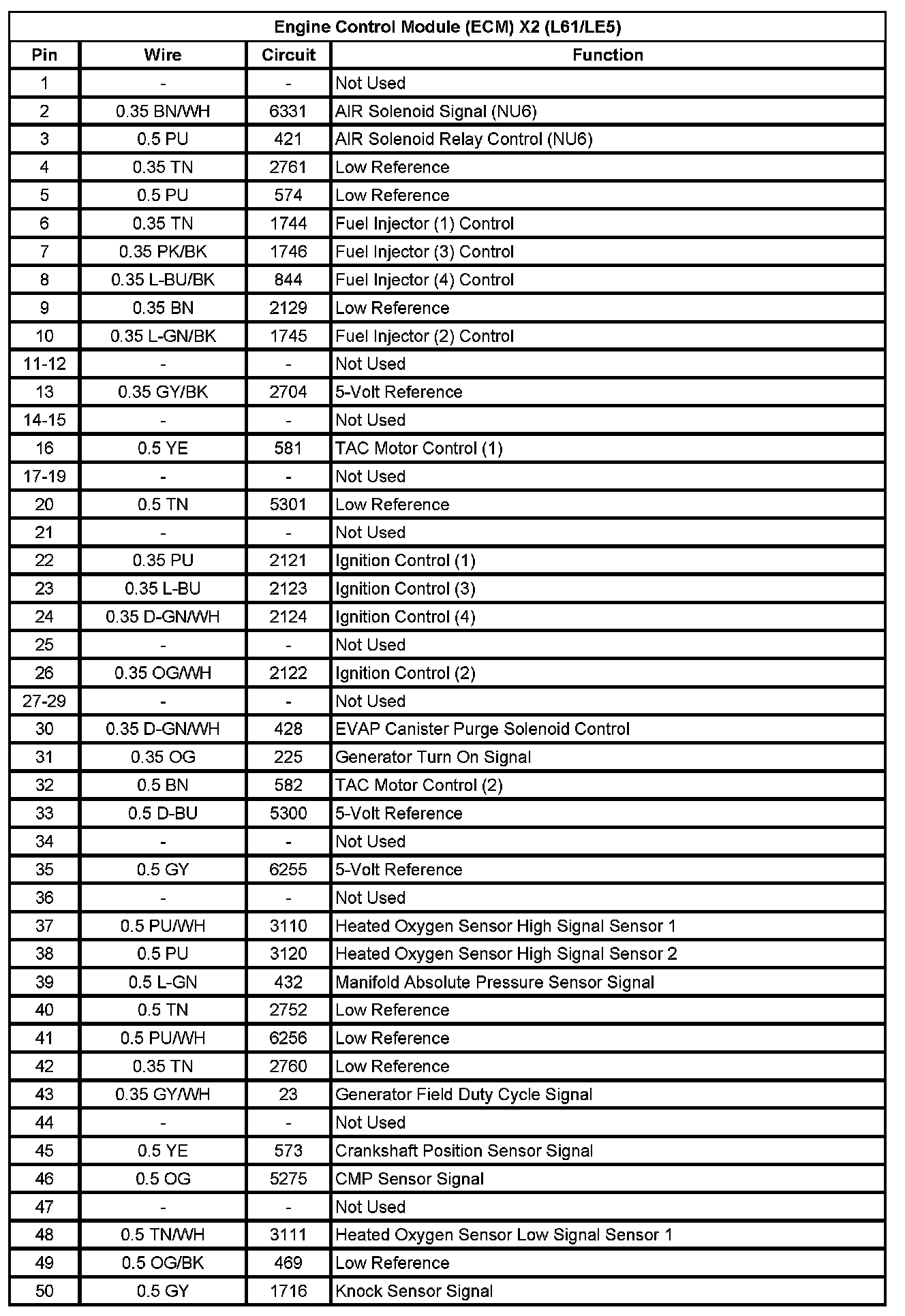Engine Control Module (ECM) X2 (L61/LE5) (Pin 1 To 50):
