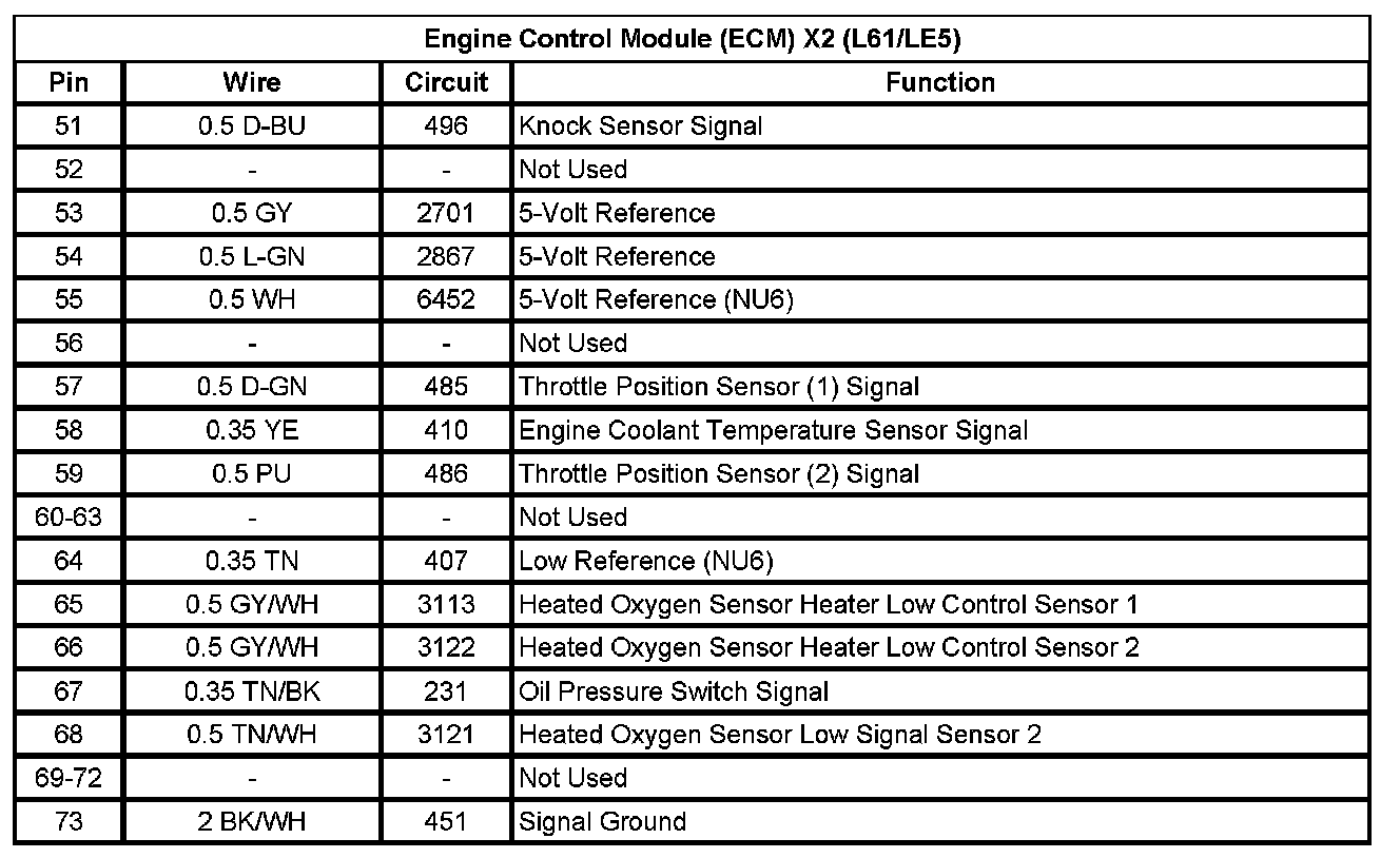 Engine Control Module (ECM) X2 (L61/LE5) (Pin 51 To 73):