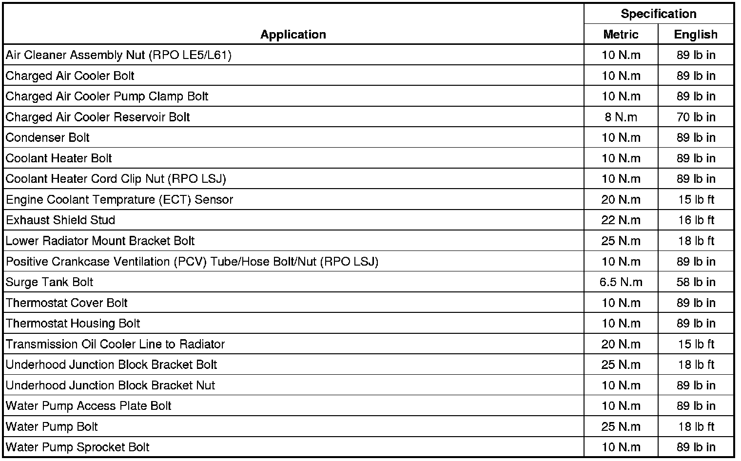 Fastener Tightening Specifications