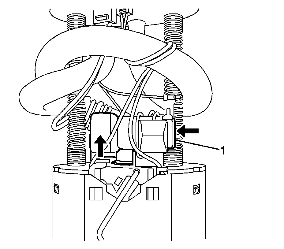 7. Slide the fuel level sensor (1) up and out from the module bucket.
