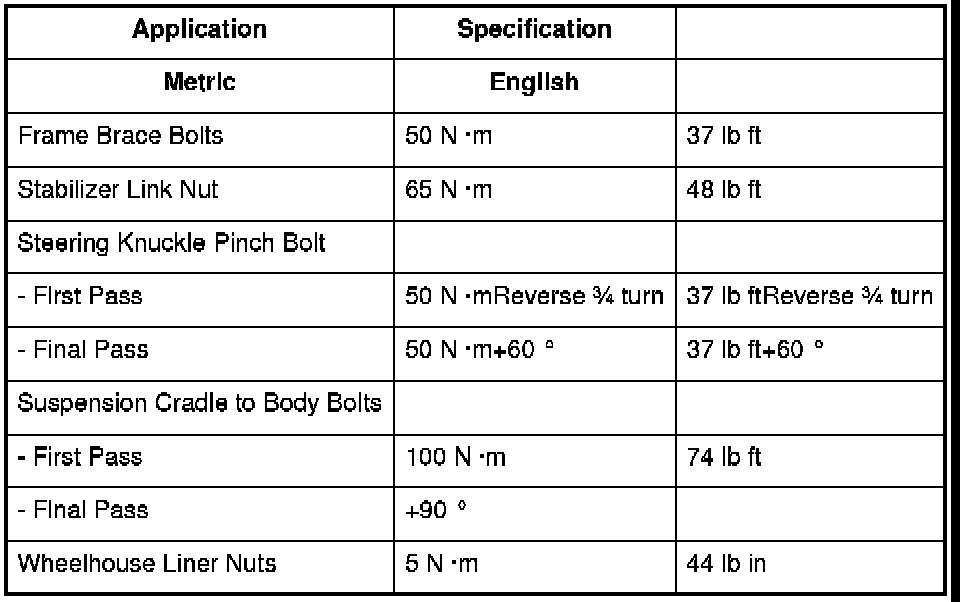 Fastener Tightening Specifications