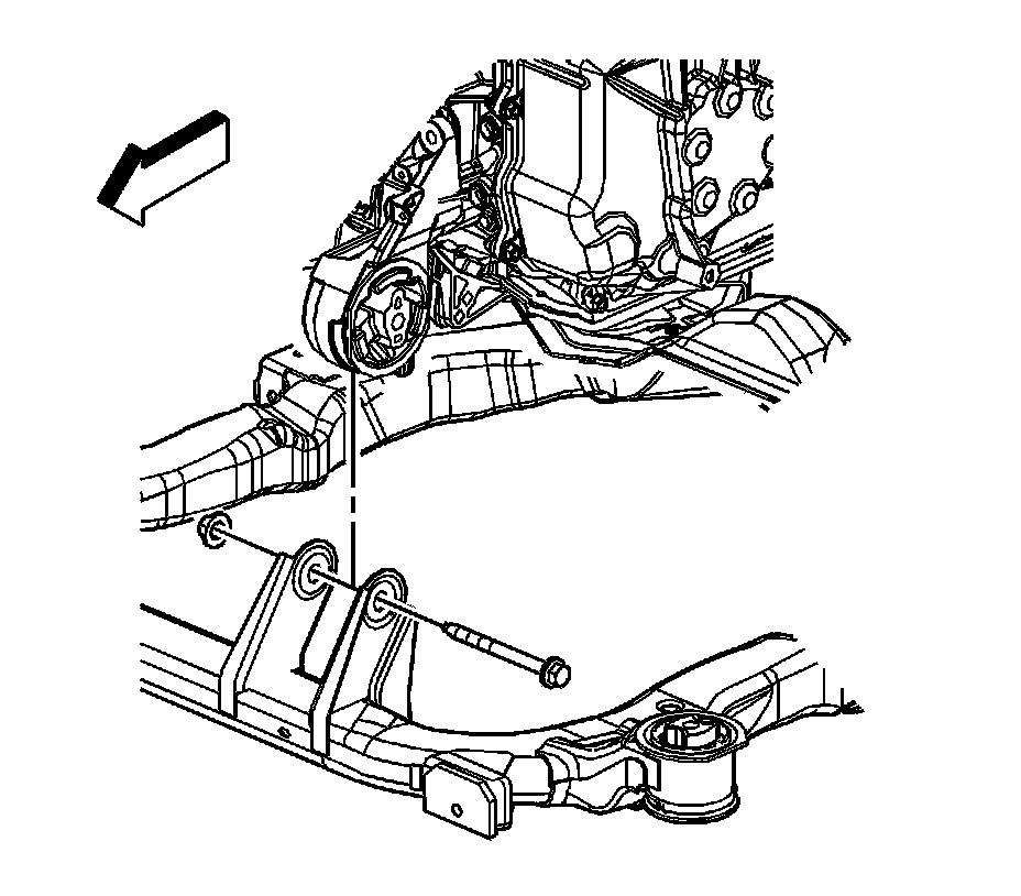 1.Remove the front transmission mount bolt from the frame. Refer to Transmission Front Mount Replacement .