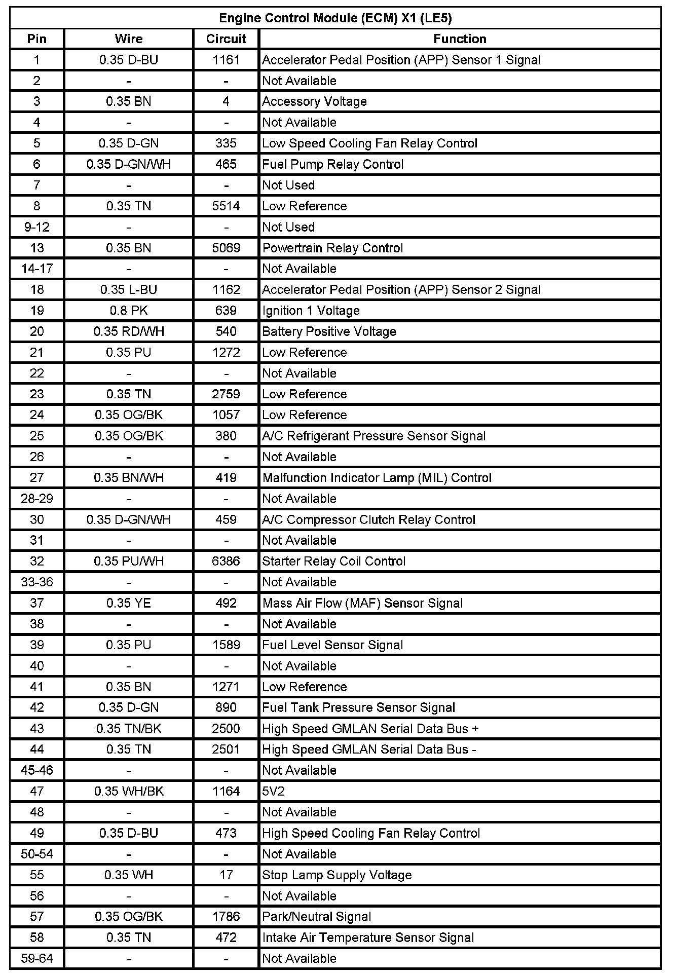 Engine Control Module (ECM) X1 (LE5) ( Pin 1 To 64):