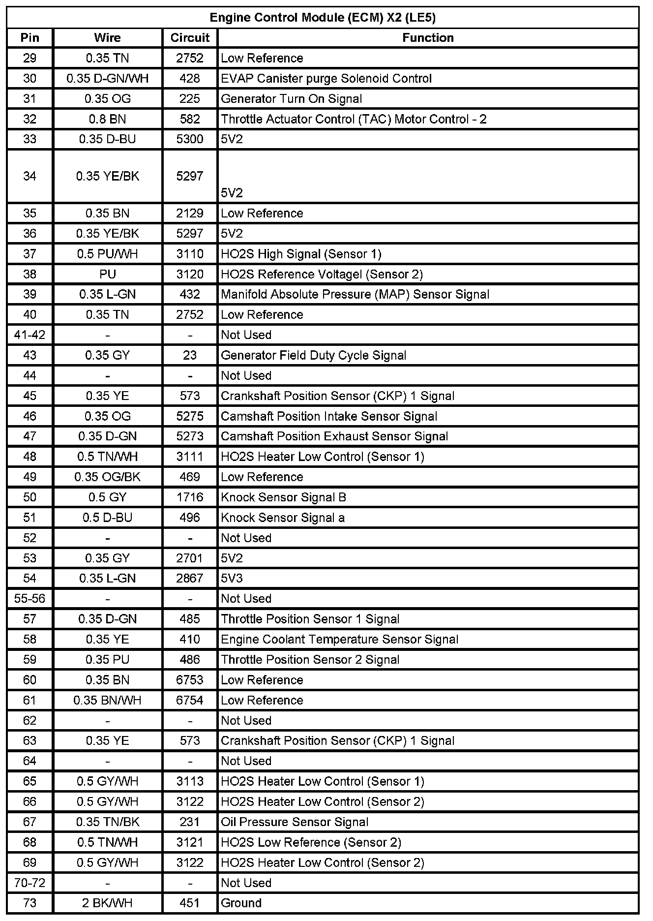 Engine Control Module (ECM) X2 (LE5) (Pin 29 To 73):