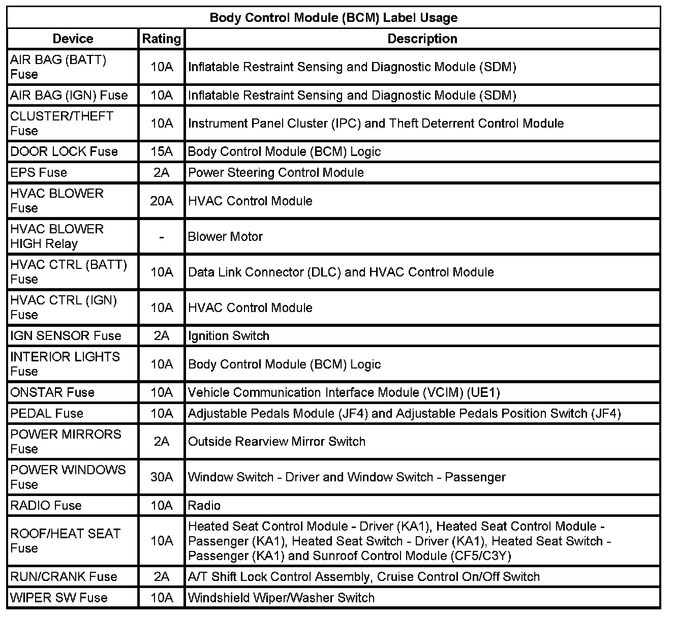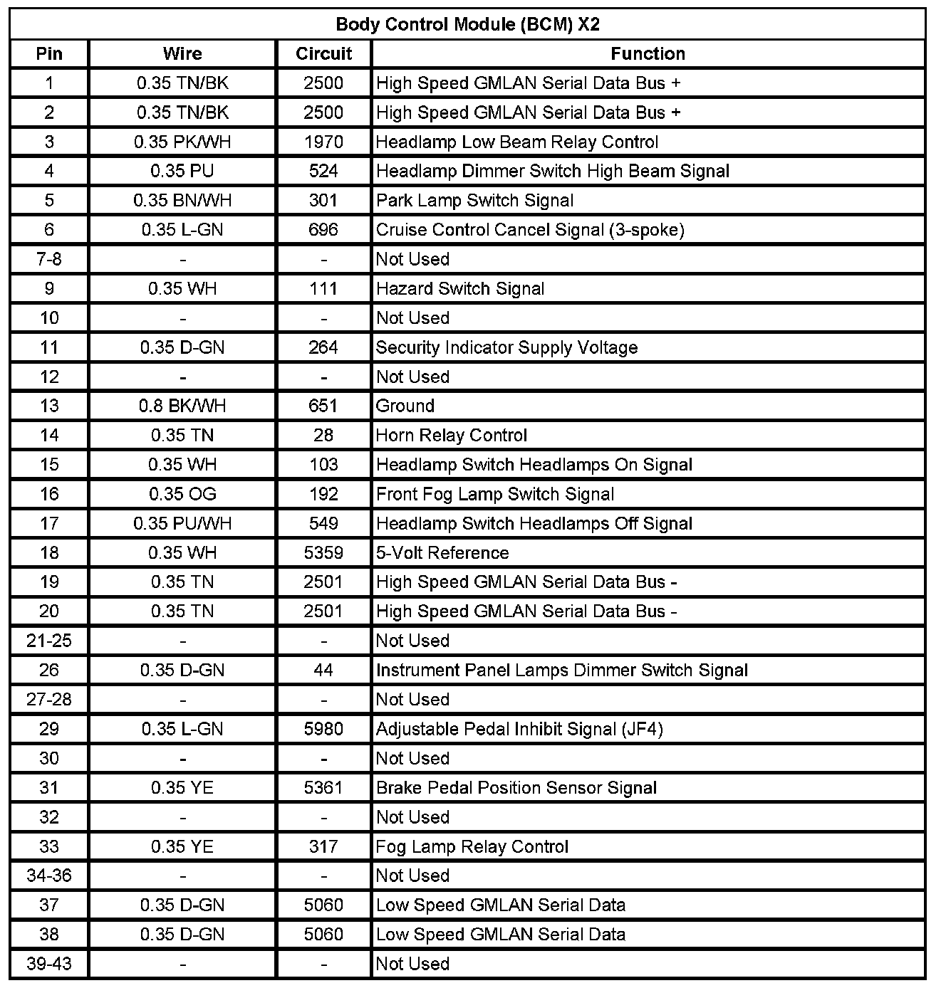 Body Control Module (BCM) X2 (Pin 1 To 43):