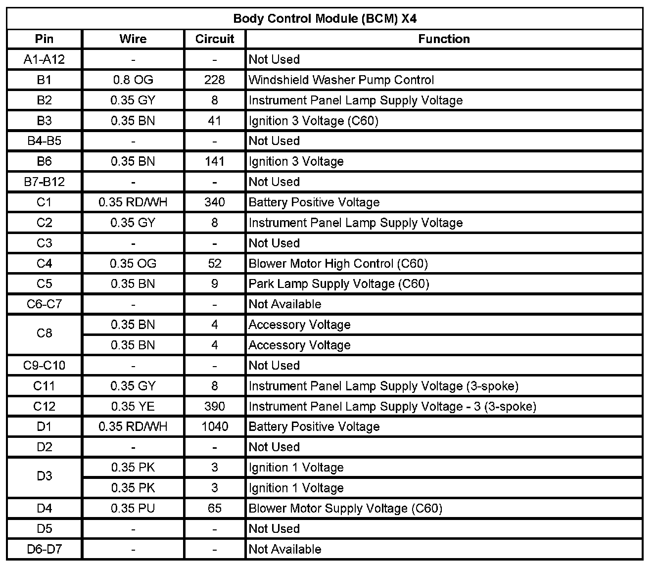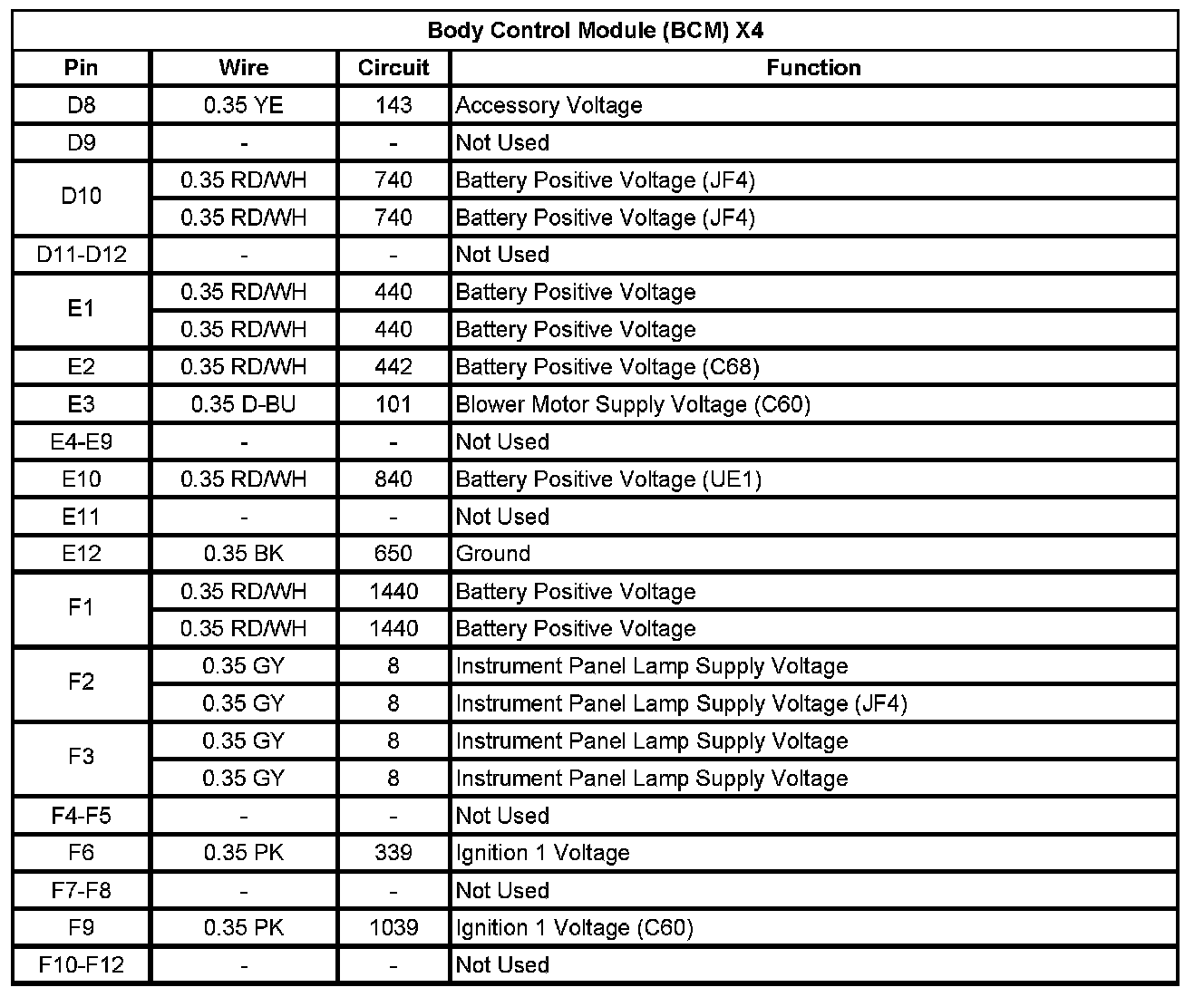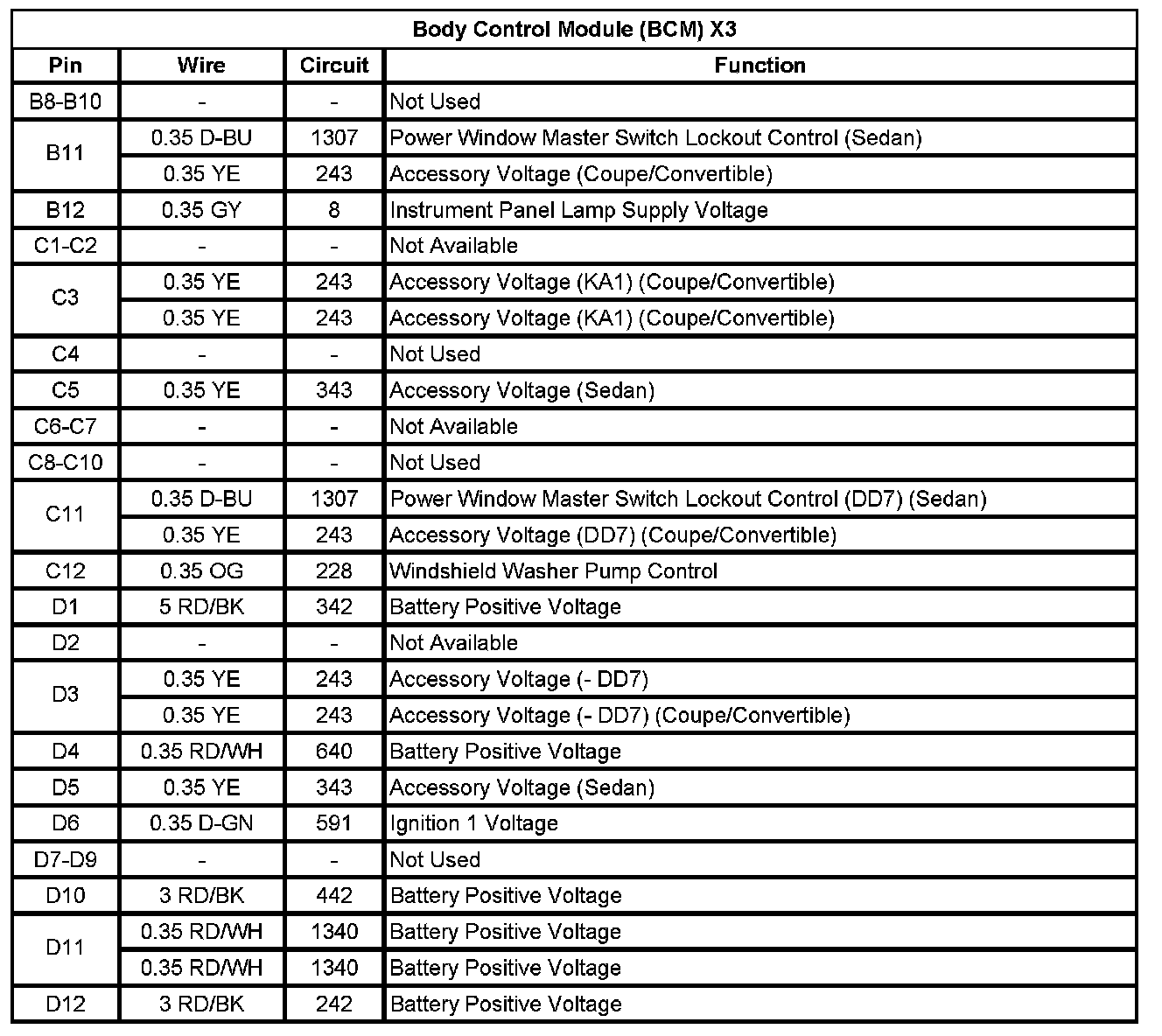 Body Control Module (BCM) X3 (Pin B8 To D12):
