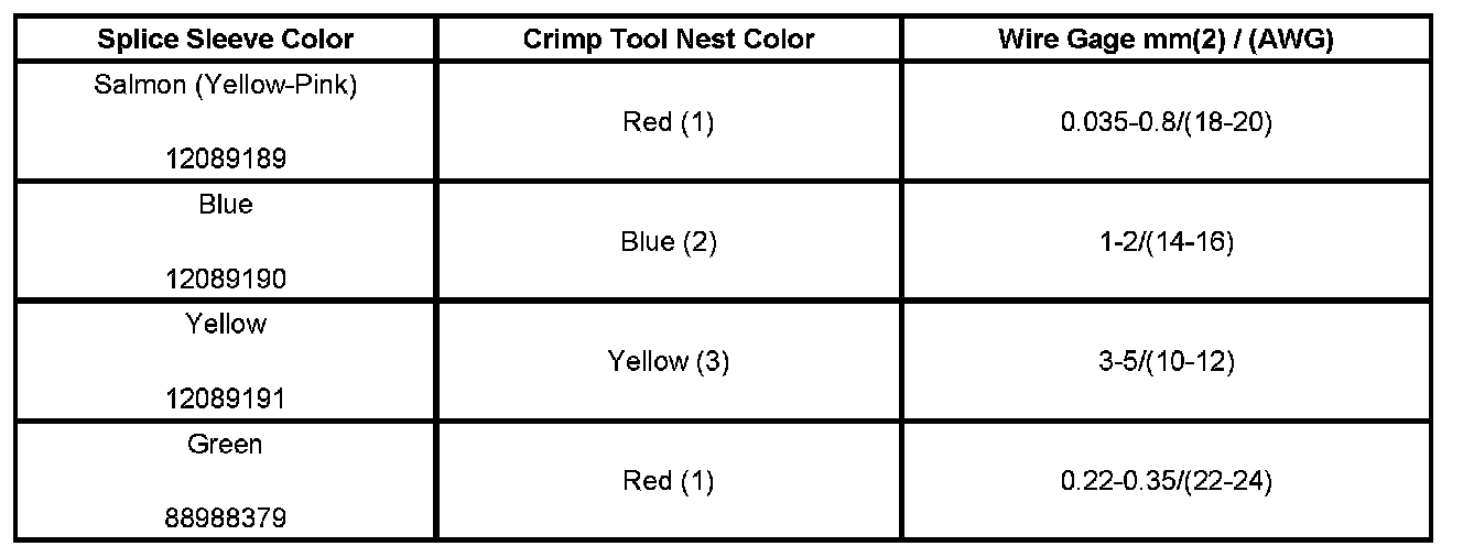 4. Select the proper DuraSeal splice sleeve according to the wire size. Refer to the above table at the beginning of the repair procedure for the color coding of the DuraSeal splice sleeves and the crimp tool nests.