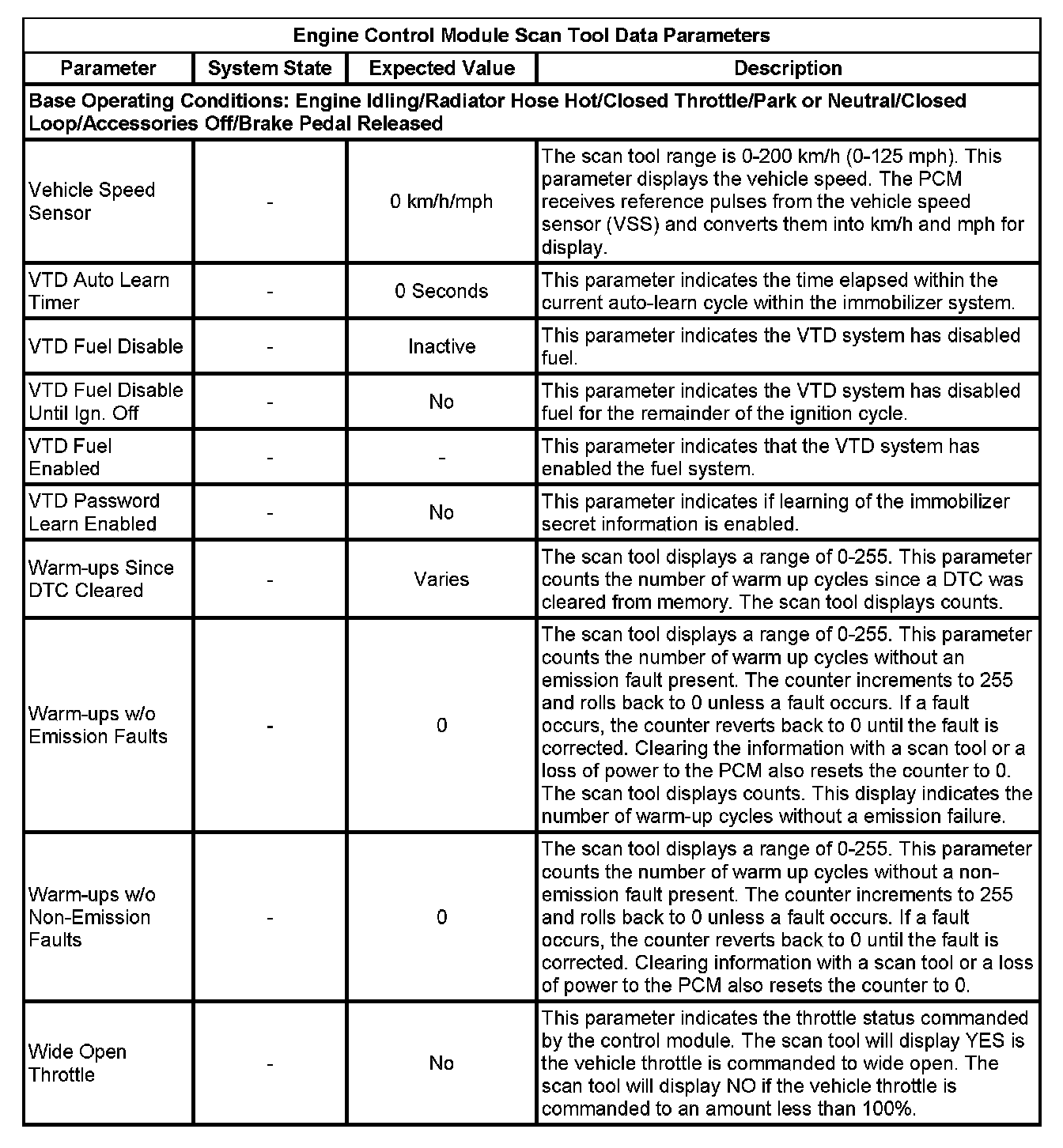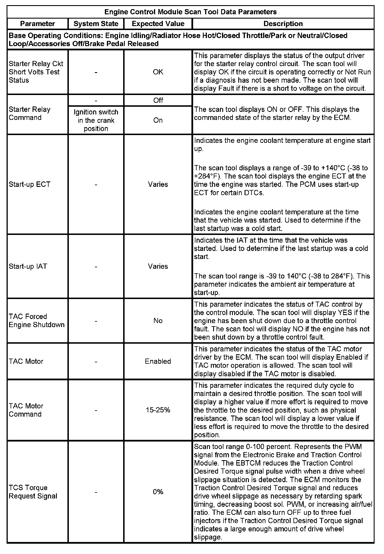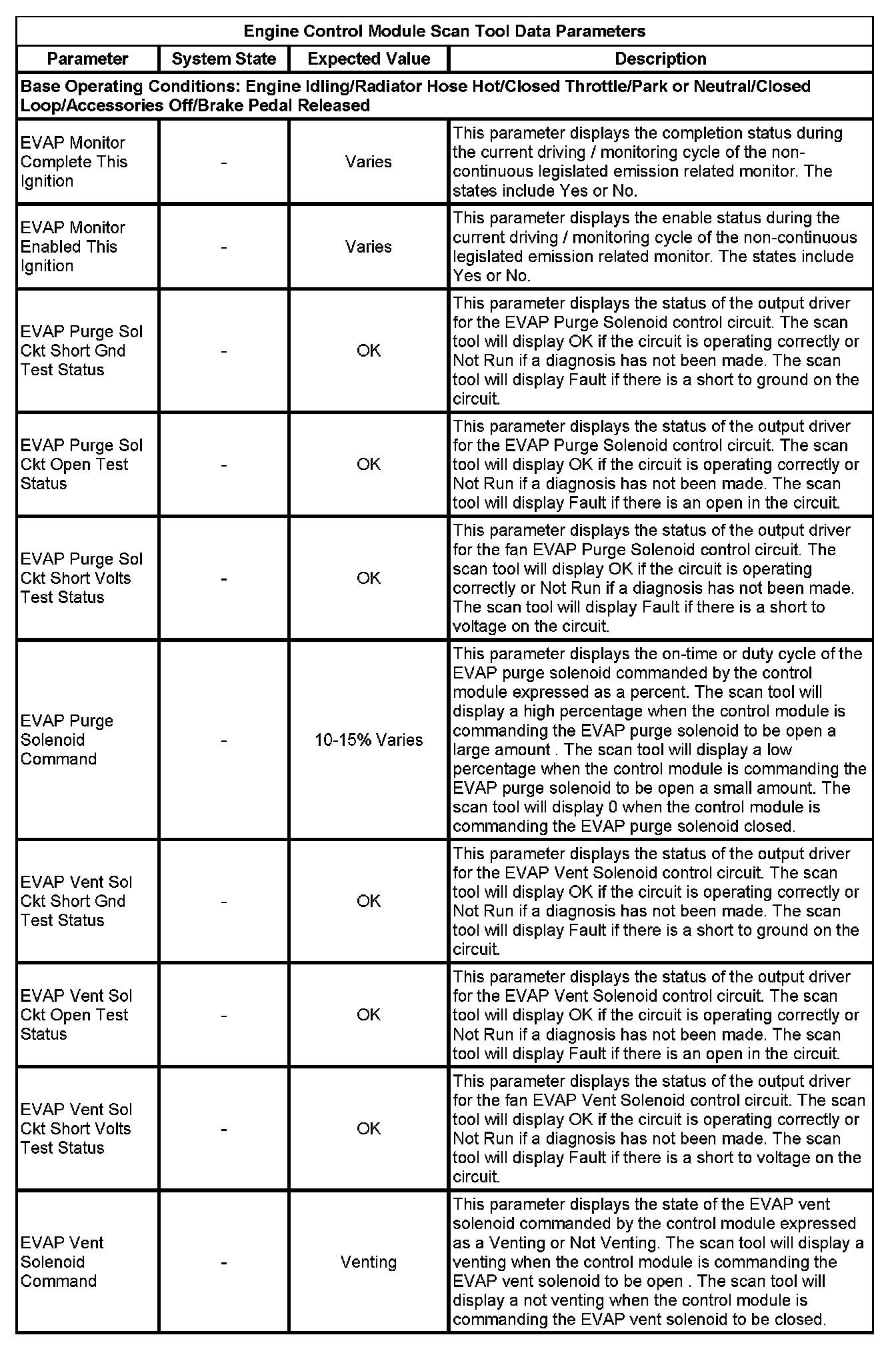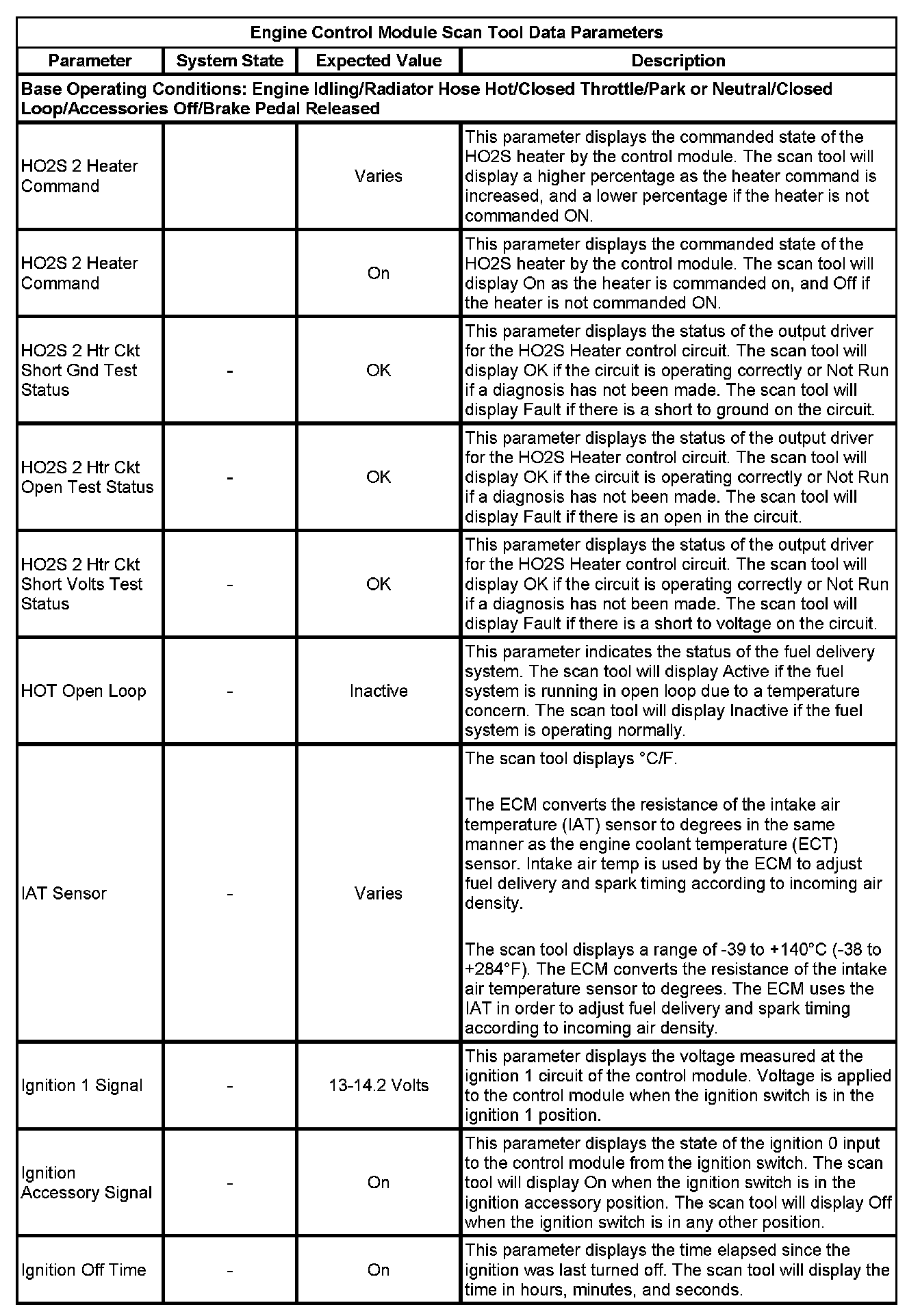 The scan tool values from a properly running engine may be used for comparison with the engine you are diagnosing. The Engine Scan Tool Data List represents values that would be seen on a normally running engine.