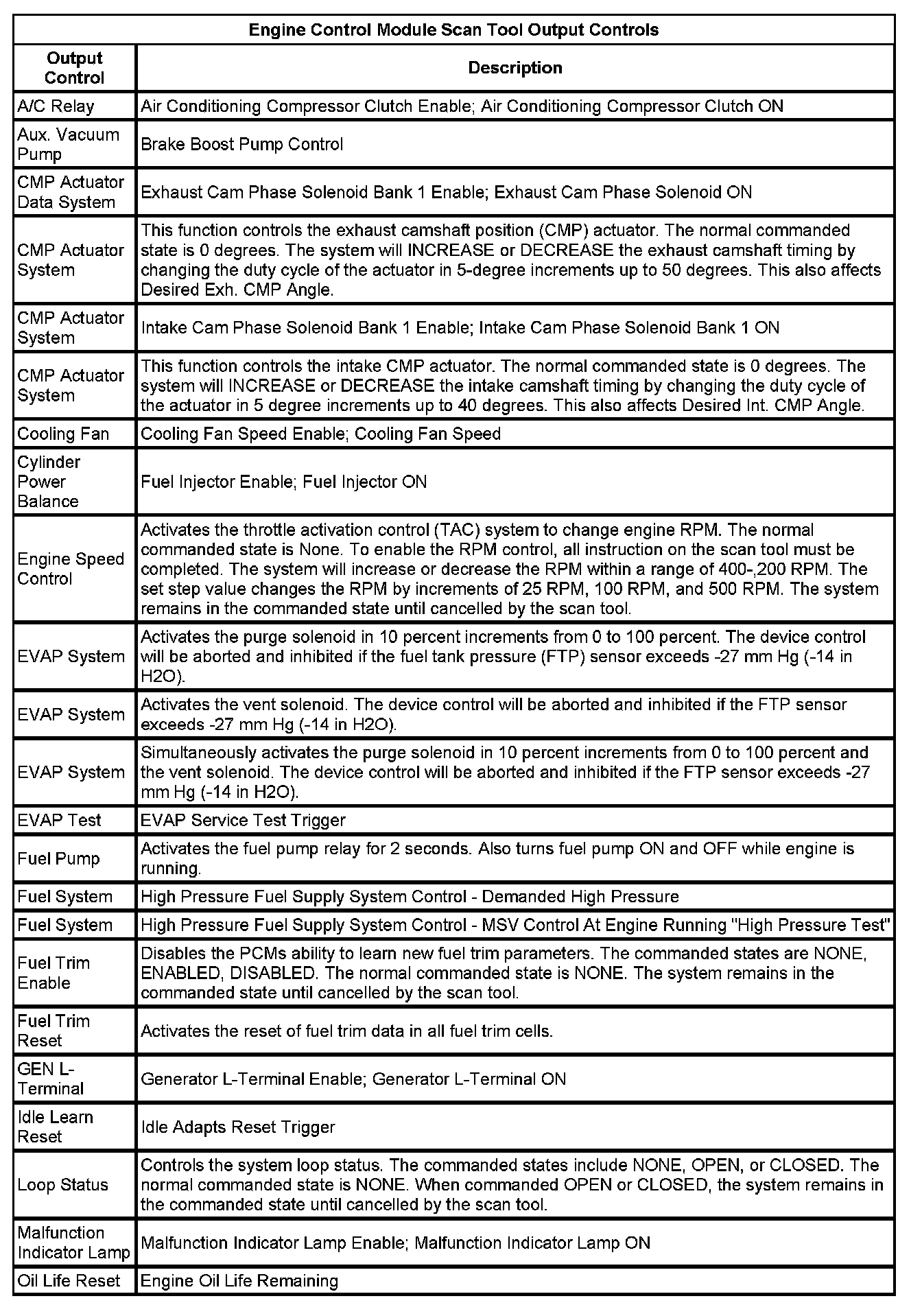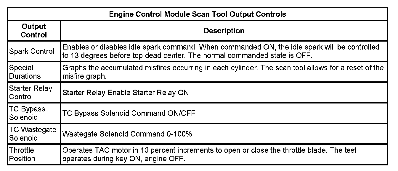 The Engine Control Module Scan Tool Data List contains all engine-related parameters that are available on the scan tool. The list is arranged in alphabetical order. A given parameter may appear in any one of the data lists, and in some cases may appear more than once, or in more than one data list in order to group certain related parameters together.