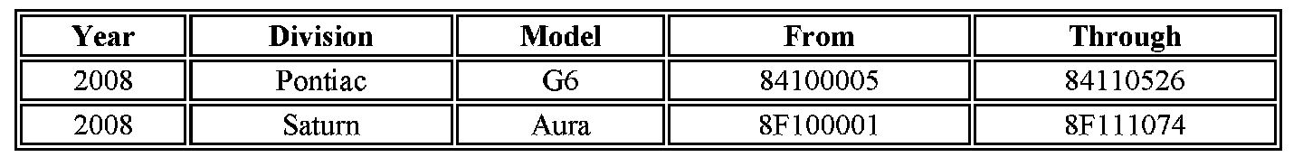 A list of involved vehicles currently in dealer/retailer inventory is available on the "Service Update Bulletin Information" link under the "Service" tab in DealerWorld (GM and Saturn US), or attached to the Dealer Communication (Canada), used to release this bulletin. Customer vehicles that return for service, for any reason, and are still covered under the vehicles base warranty, and are within the VIN breakpoints shown, should be checked for vehicle eligibility in the appropriate system listed below.