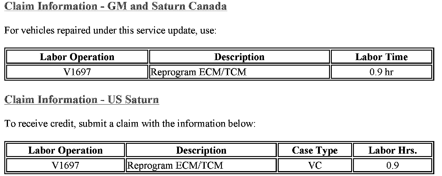 Claim Information - GM and Saturn Canada/US Saturn