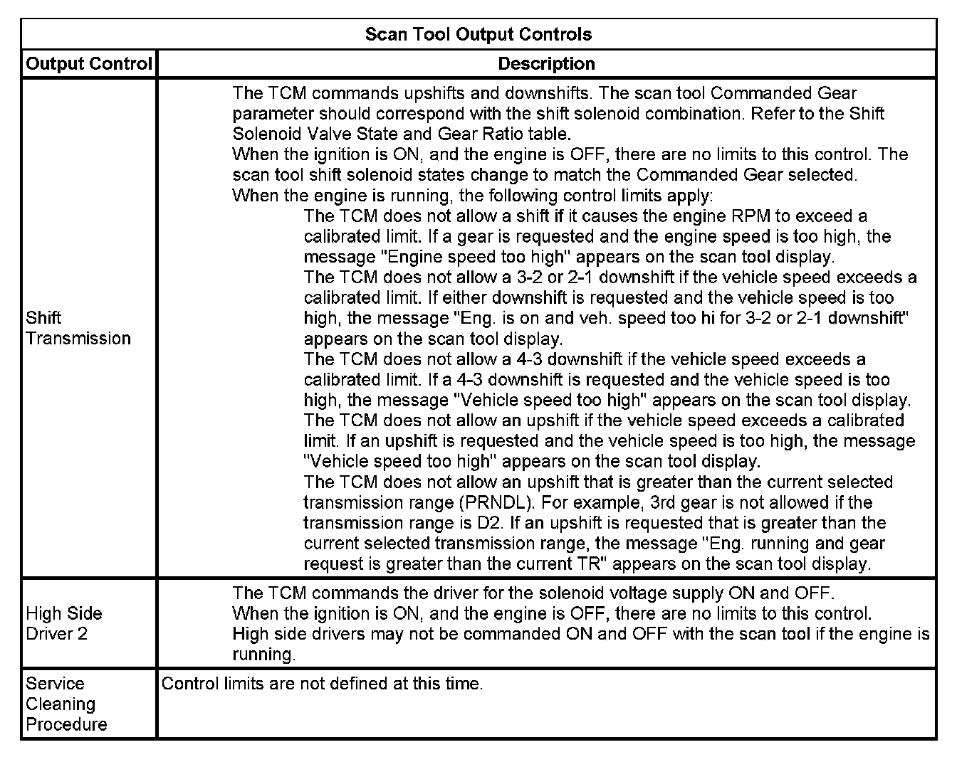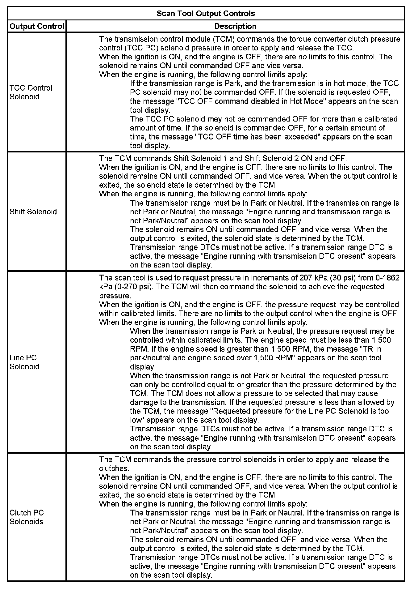 The Transmission Control Module Scan Tool Data List contains all transmission related parameters that are available on the scan tool. The list is arranged in alphabetical order. A given parameter may appear in any one of the data lists, and in some cases may appear more than once, or in more than one data list in order to group certain related parameters together.
