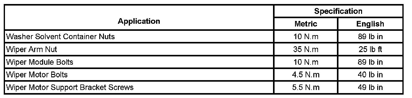 Wiper and Washer Systems: Specifications