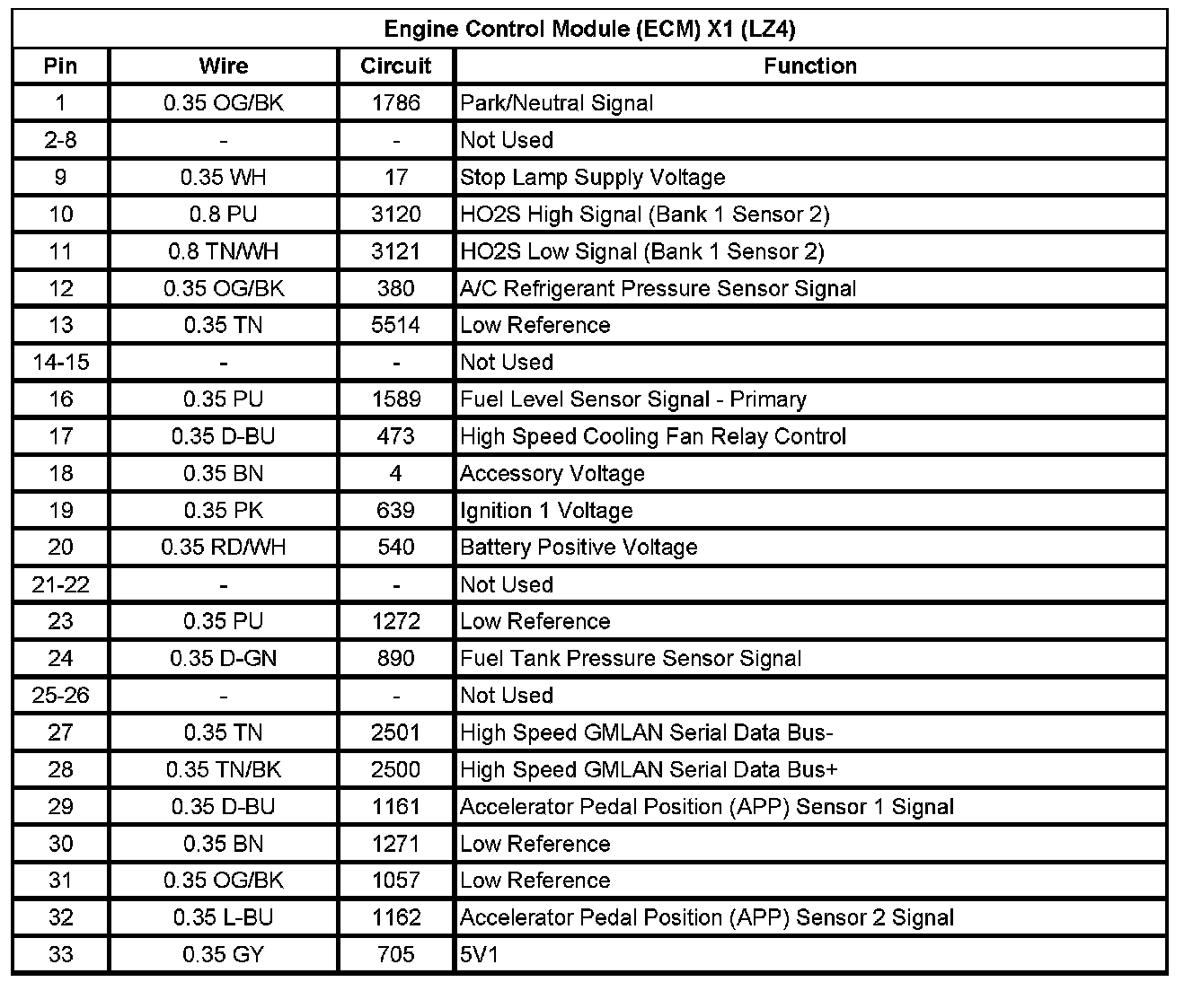 Engine Control Module (ECM) X1 (LZ4) (Pin 1 To 33):
