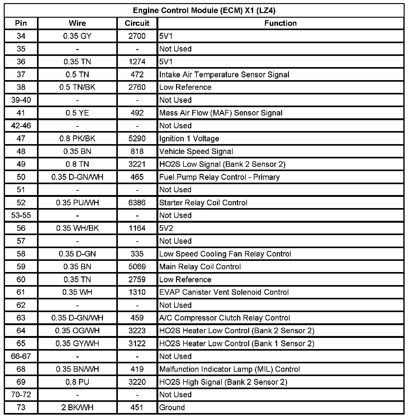 Engine Control Module (ECM) X1 (LZ4) (Pin 34 To 73):