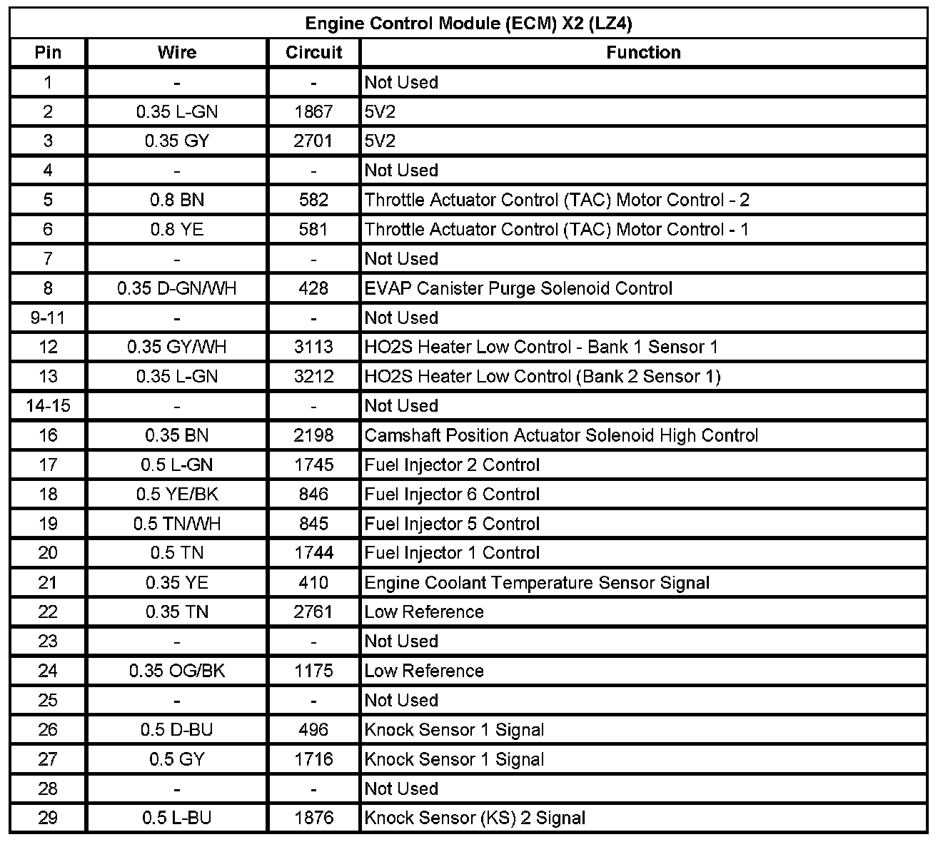 Engine Control Module (ECM) X2 (LZ4) (Pin 1 To 29):