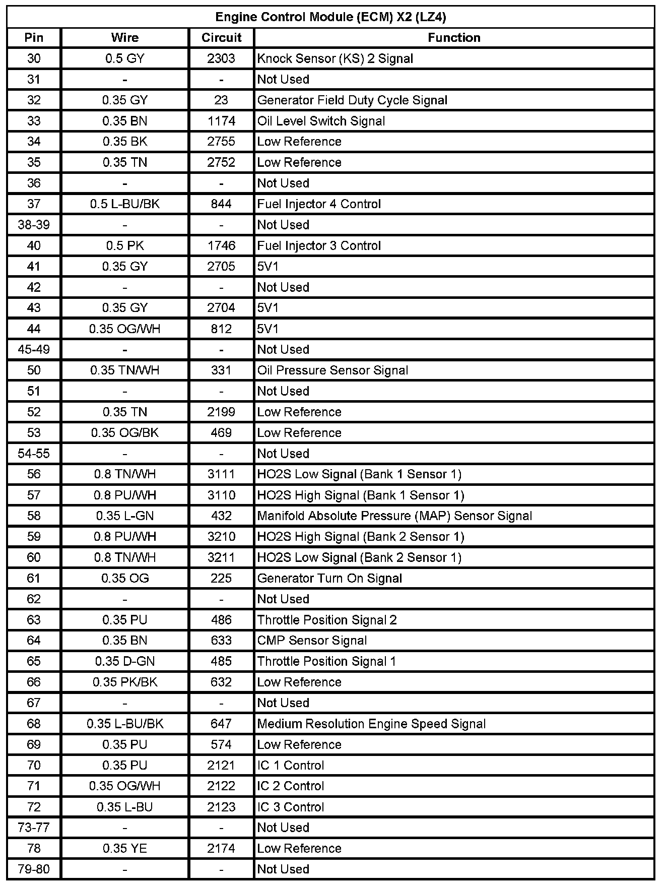 Engine Control Module (ECM) X2 (LZ4) (Pin 30 To 80):