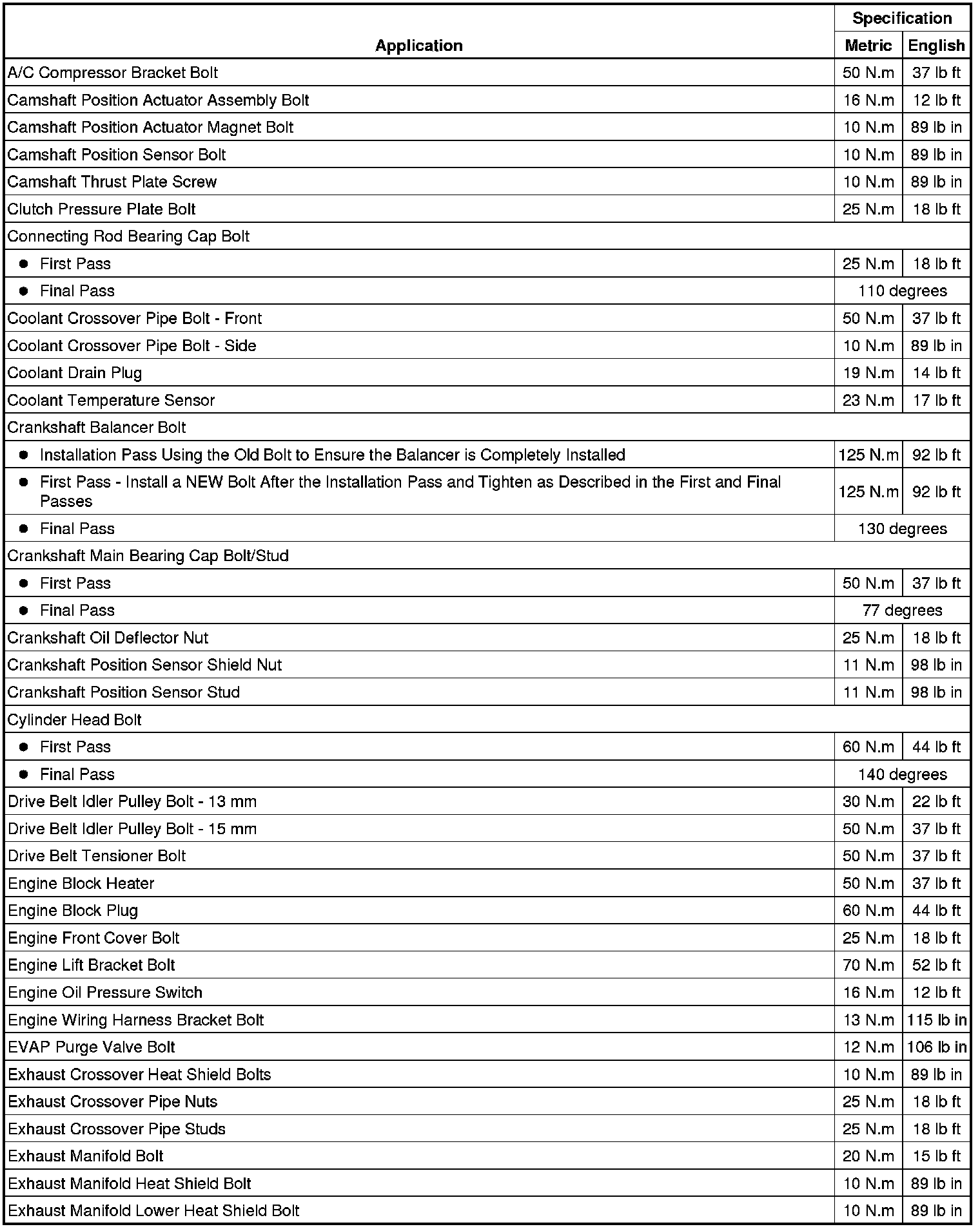 Fastener Tightening Specifications