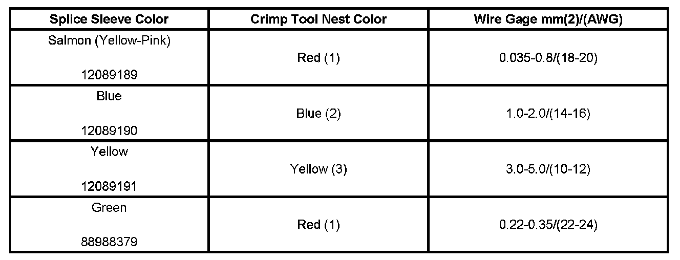 4. Select the proper DuraSeal splice sleeve according to the wire size. Refer to the above table at the beginning of the repair procedure for the color coding of the DuraSeal splice sleeves and the crimp tool nests.