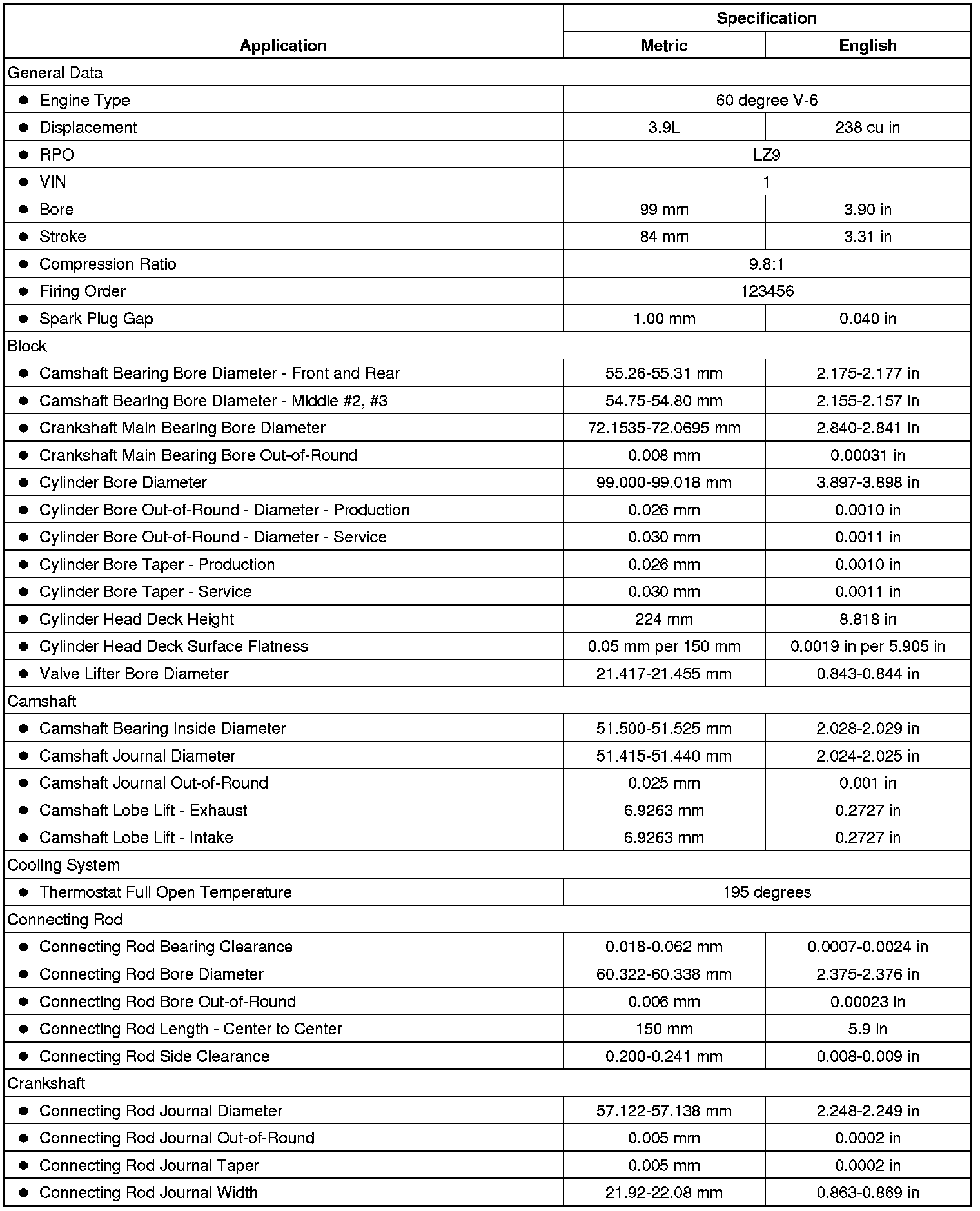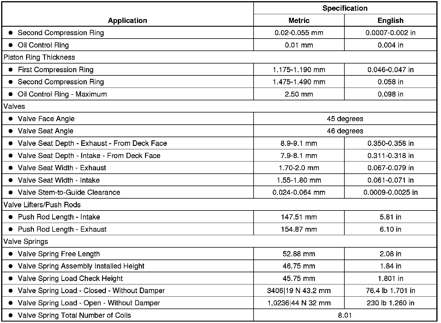 Engine Mechanical Specifications