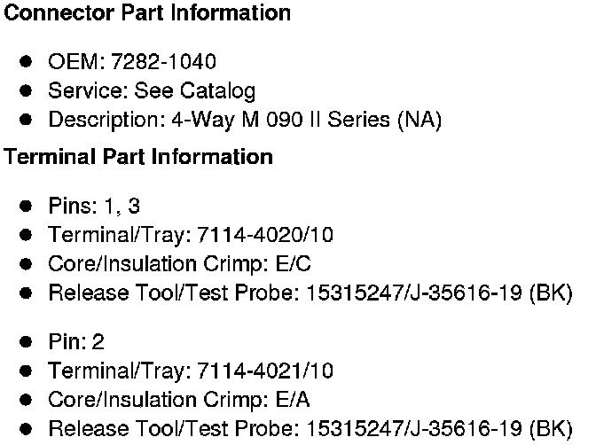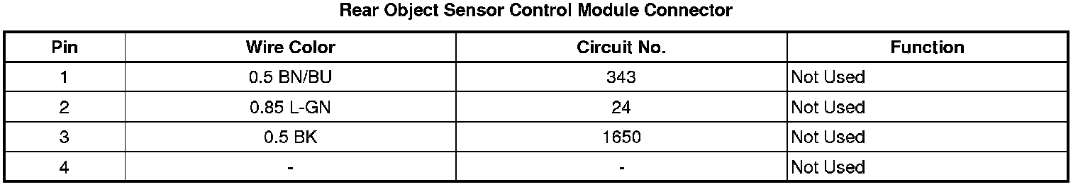Rear Object Sensor Control Module Connector