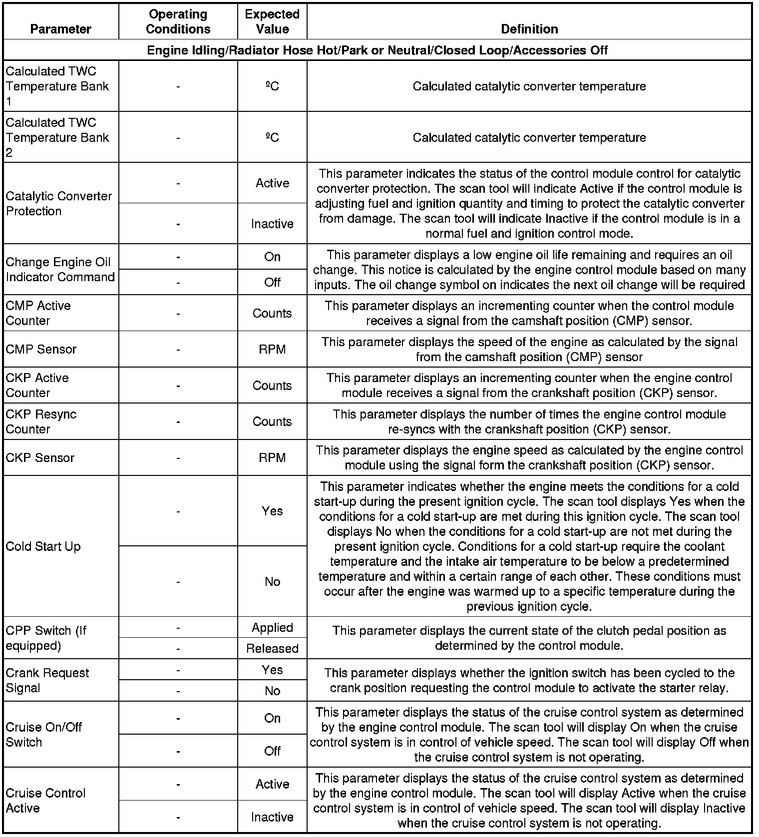 Only the parameters listed below are referenced in this service information for use in diagnosis. If all values are within the typical range described below, refer to Symptoms - Engine Controls (- Symptoms - Engine Controls) .