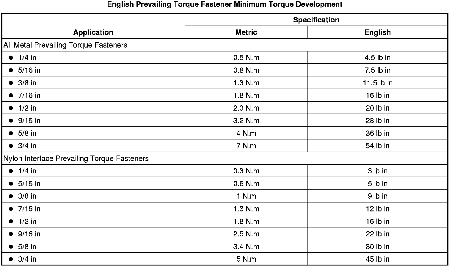 * The fastener develops the specified minimum torque against its counterpart prior to the fastener seating