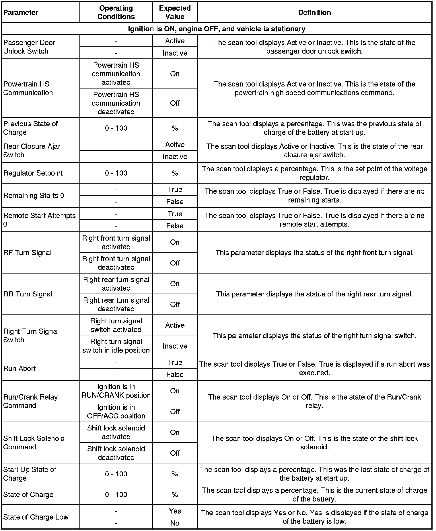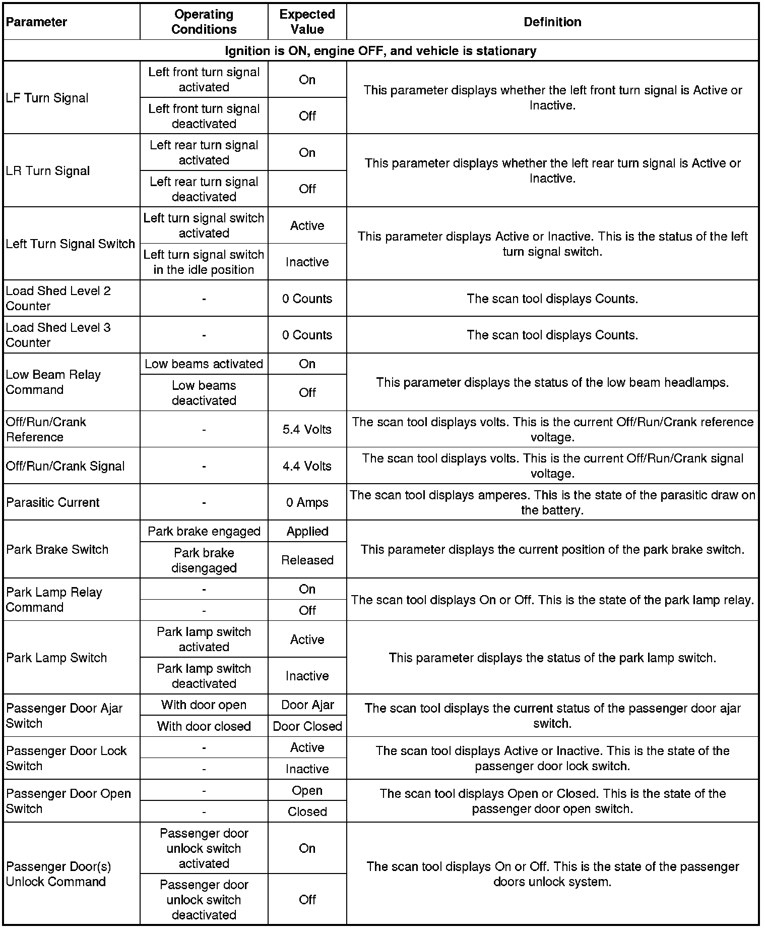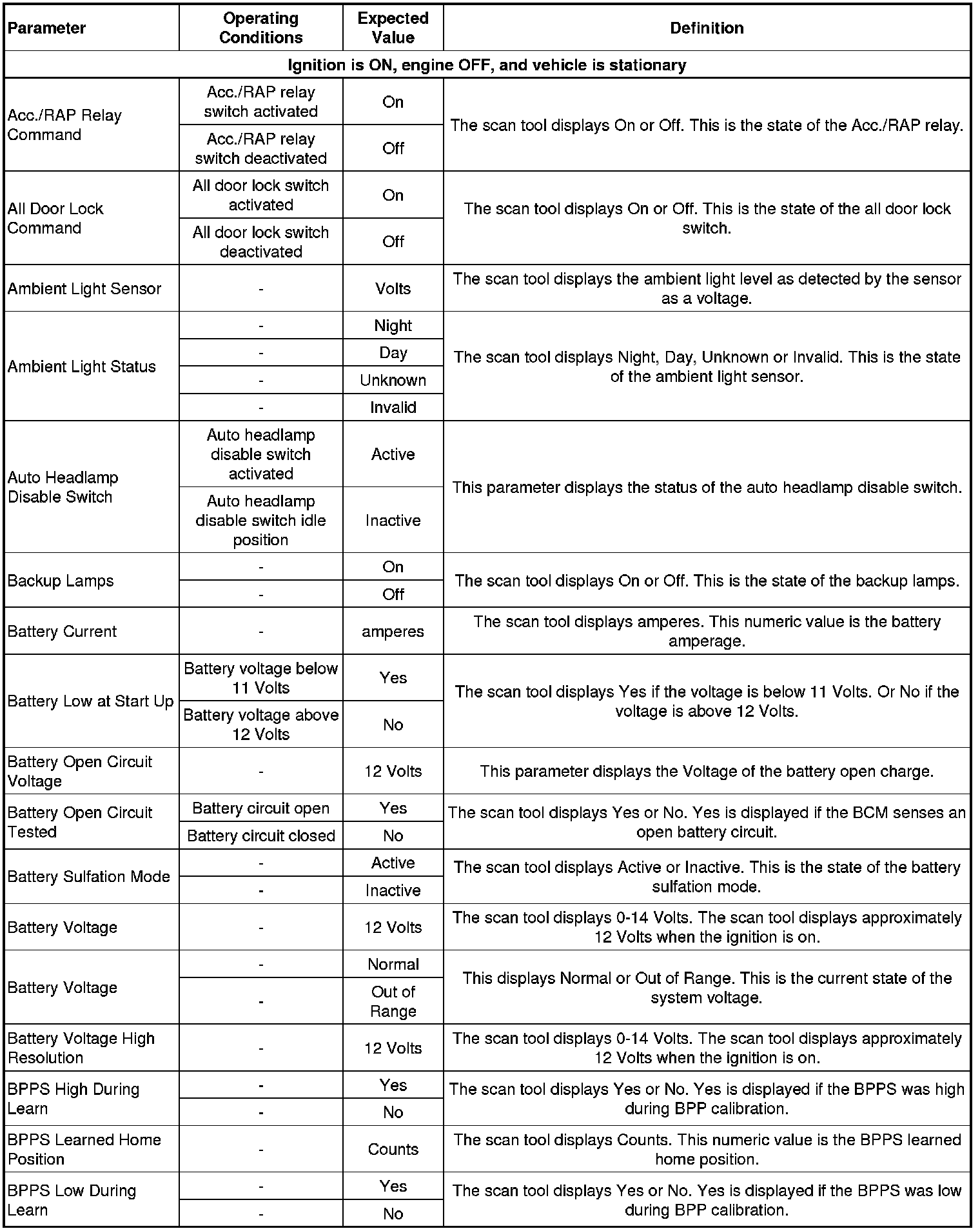 Body Control Module Scan Tool Data Parameters