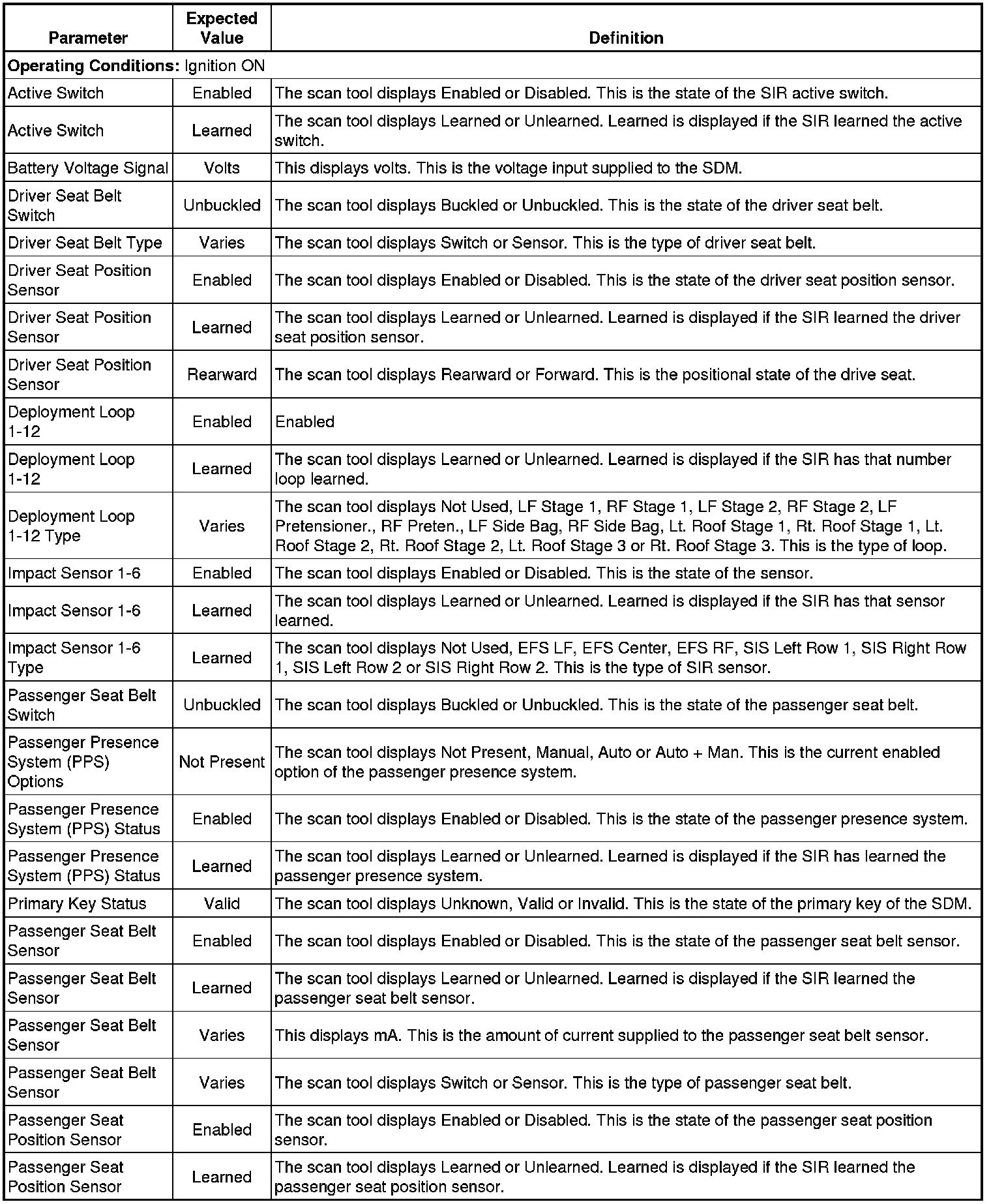 Sensing and Diagnostic Module Scan Tool Data Parameters
