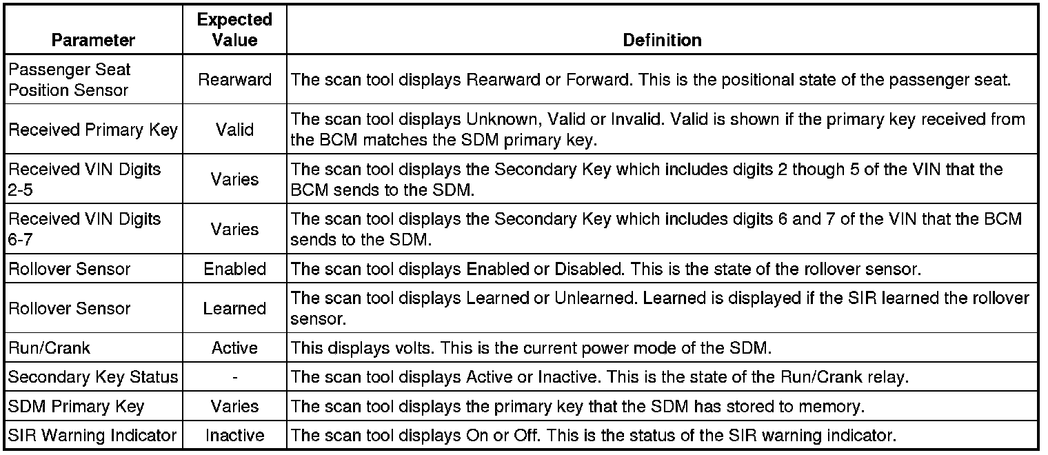 Inflatable Restraint Sensing and Diagnostic Module Scan Tool Information