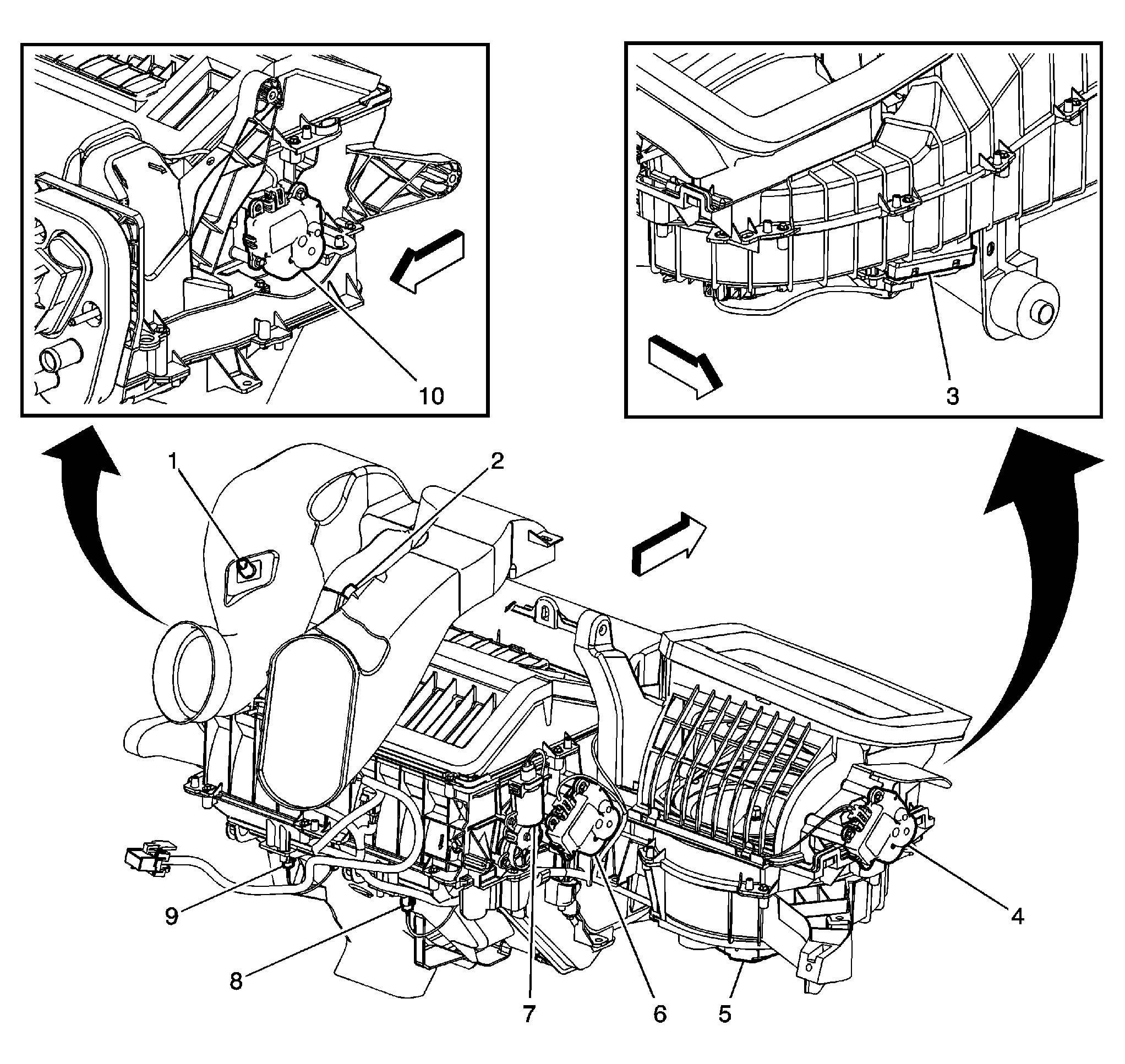 | Blower Motor Control Processor (3) | Lower right side HVAC module. See Figure. |